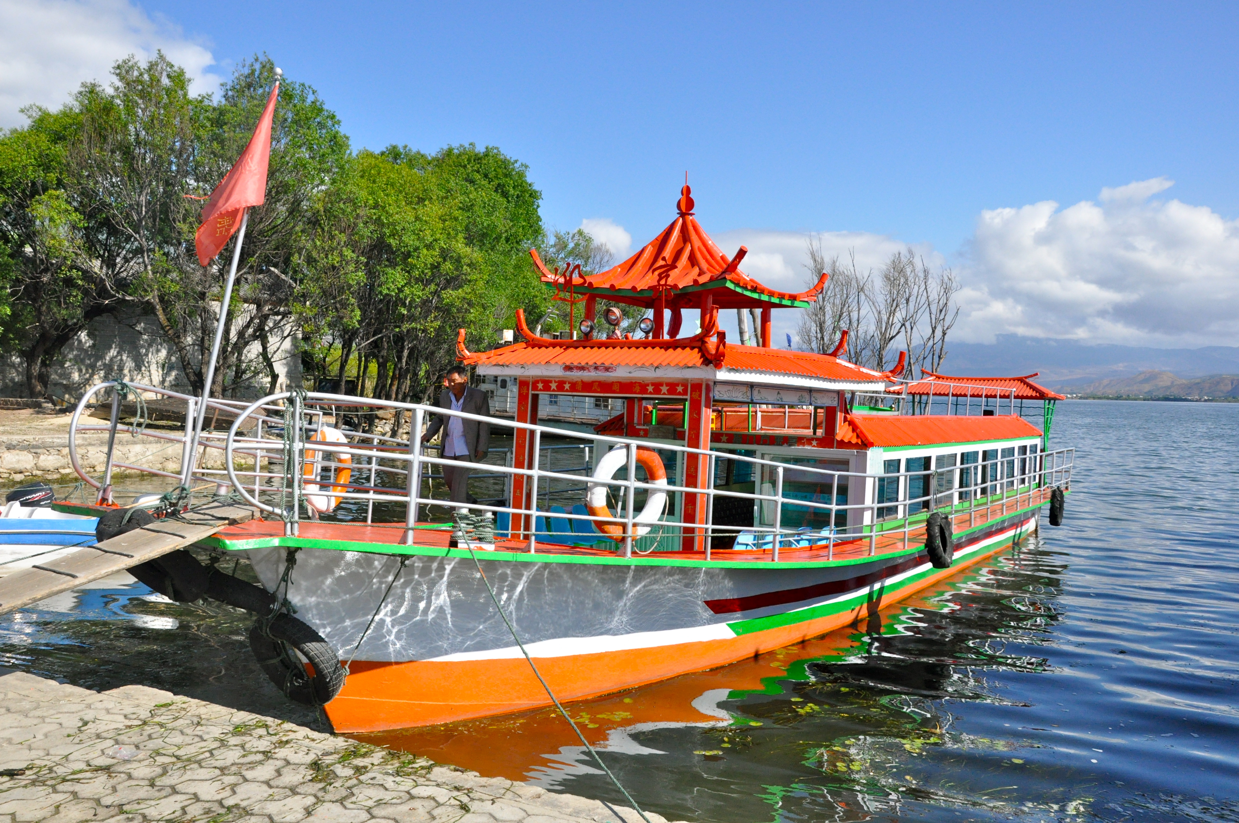 Em Caicun, pegamos um pequeno barco até a tranquila vila de pescadores na outra margem do lago (Jinsuo Dao).