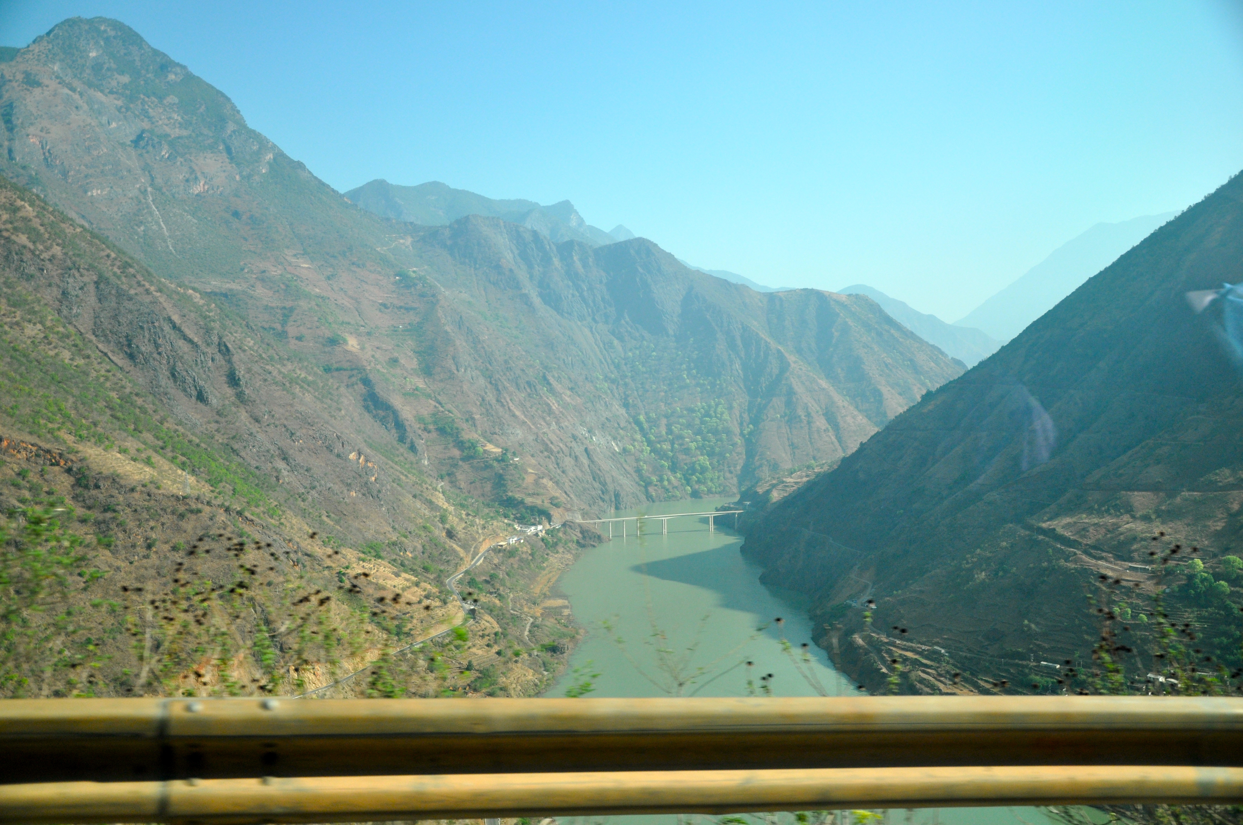 Dessa vez o destino era Lugu Lake. Saímos de Lijiang e pegamos a estrada de aproximadamente 300km que leva a essa cidade. A estrada rapidamente vai subindo montanhas, até começar a formar desfiladeiros de proporções chinesas.