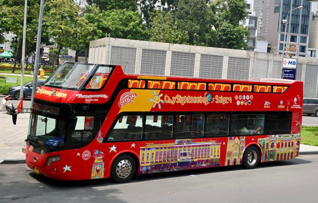 Estávamos em Saigon, a maior cidade do Vietnã, onde começamos um programa de 24 dias, visitando os principais destinos do país. Começamos o dia fazendo um programa no Hop On Hop Off, aqueles ônibus duplos que percorrem as principais atrações turísticas da cidade, onde é possível descer e subir em qualquer ponto de parada. É uma das formas mais práticas e agradáveis de explorar a antiga Ho Chi Minh City. É excelente para ter uma noção espacial da cidade e suas principais atrações. O ônibus panorâmico de dois andares percorre os principais pontos turísticos, como o Palácio da Reunificação, a Catedral de Notre-Dame e o Correio Central, permitindo que o visitante suba e desça em qualquer parada, no seu próprio ritmo. Com áudio-guia em vários idiomas e vistas privilegiadas, o passeio oferece uma introdução completa à história e a cultura de Saigon.
