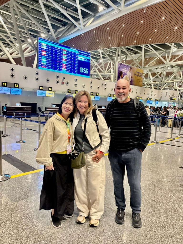 Depois do Traslado para o Aeroporto de Da Nang, por uma excelente estrada. Saímos de Hoi An e Chegamos a Da Nang, sem perceber. As cidades são quase conurbadas. Nos despedimos da simpática e carinhosa guia, Annie, com Karaokê de músicas vietnamitas que falavam das duas cidades. Ficamos Impressionados com o movimento e tamanho do aeroporto Internacional de Da Nang. Muito movimento, sobretudo de asiáticos que visitam Da Nang e Huê. Com voos para vários destinos do Oriente.