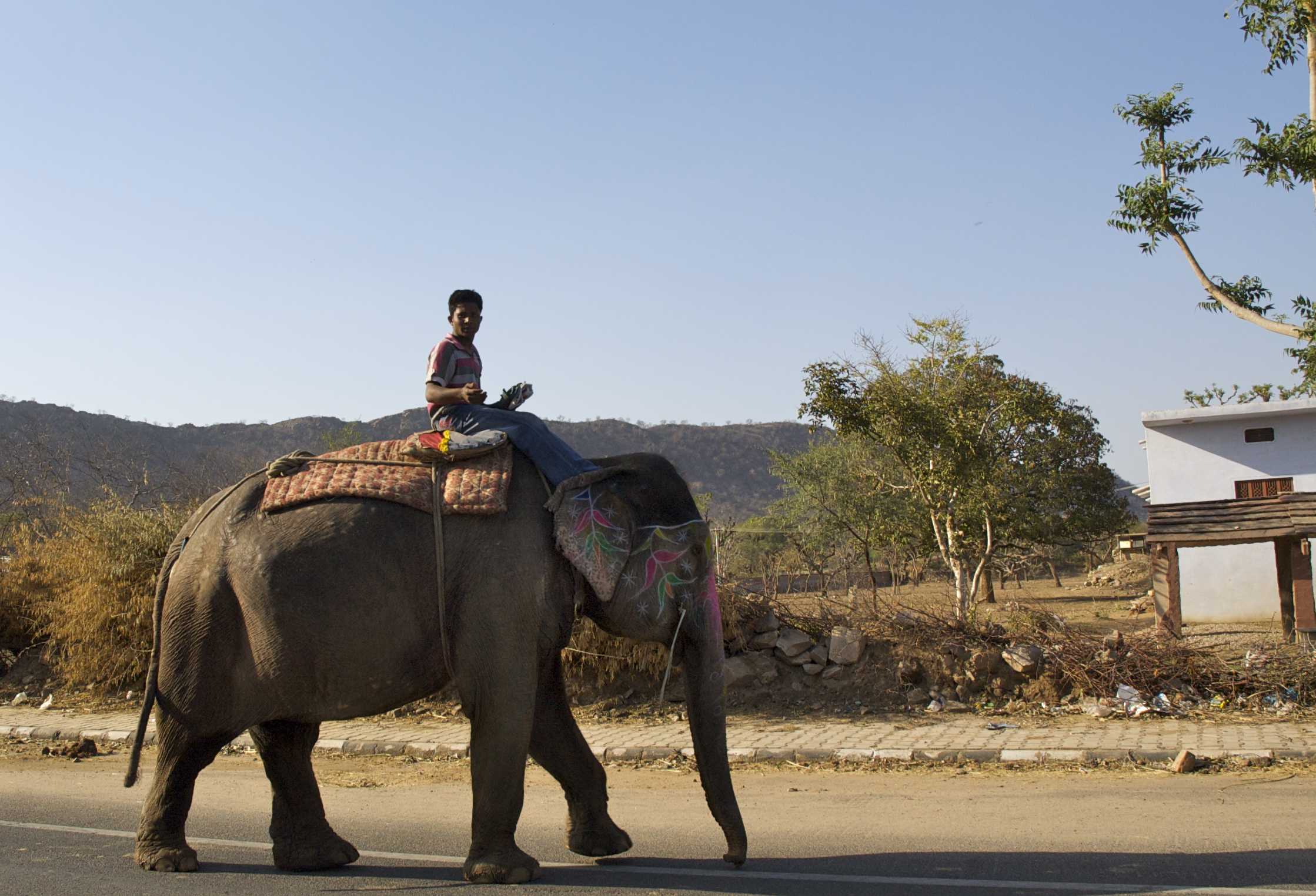 Chegamos a Jaipur e seguimos passeando pela cidade. Logo na chegada nos surpreendemos com os elefantes circulando nas ruas entre carros, camelos, motos, pessoas e muito mais. Paramos numa cooperativa de tapetes, onde assistimos os processos de produção e Mônica comprou um belíssimo tapete com lã da Caxemira por uma pechincha.
