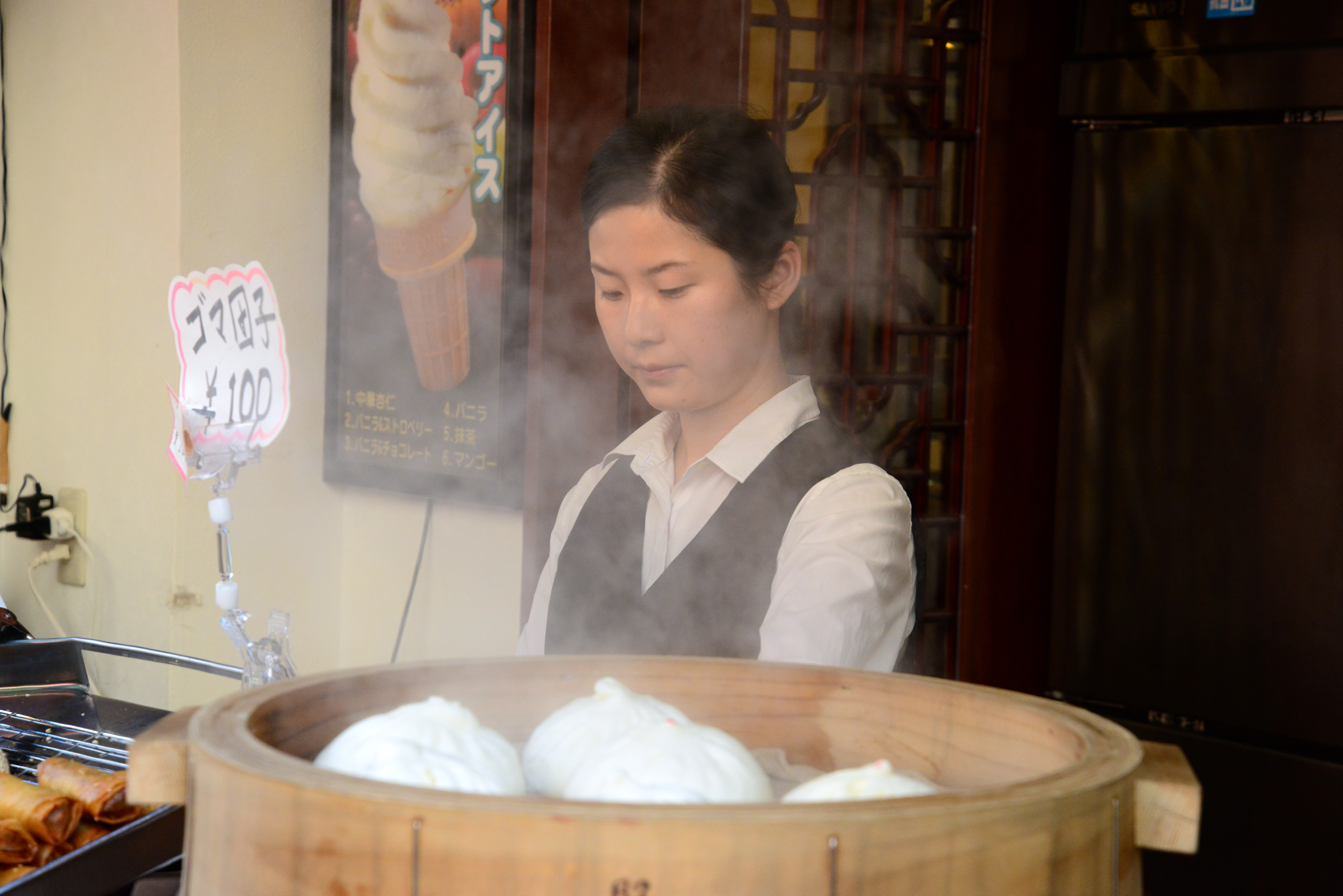 A rua principal do bairro é cheia de lojas de comidas e artesanato de qualidade. Tudo muito limpo e organizado. É um bairro chinês com o padrão de qualidade japonês.