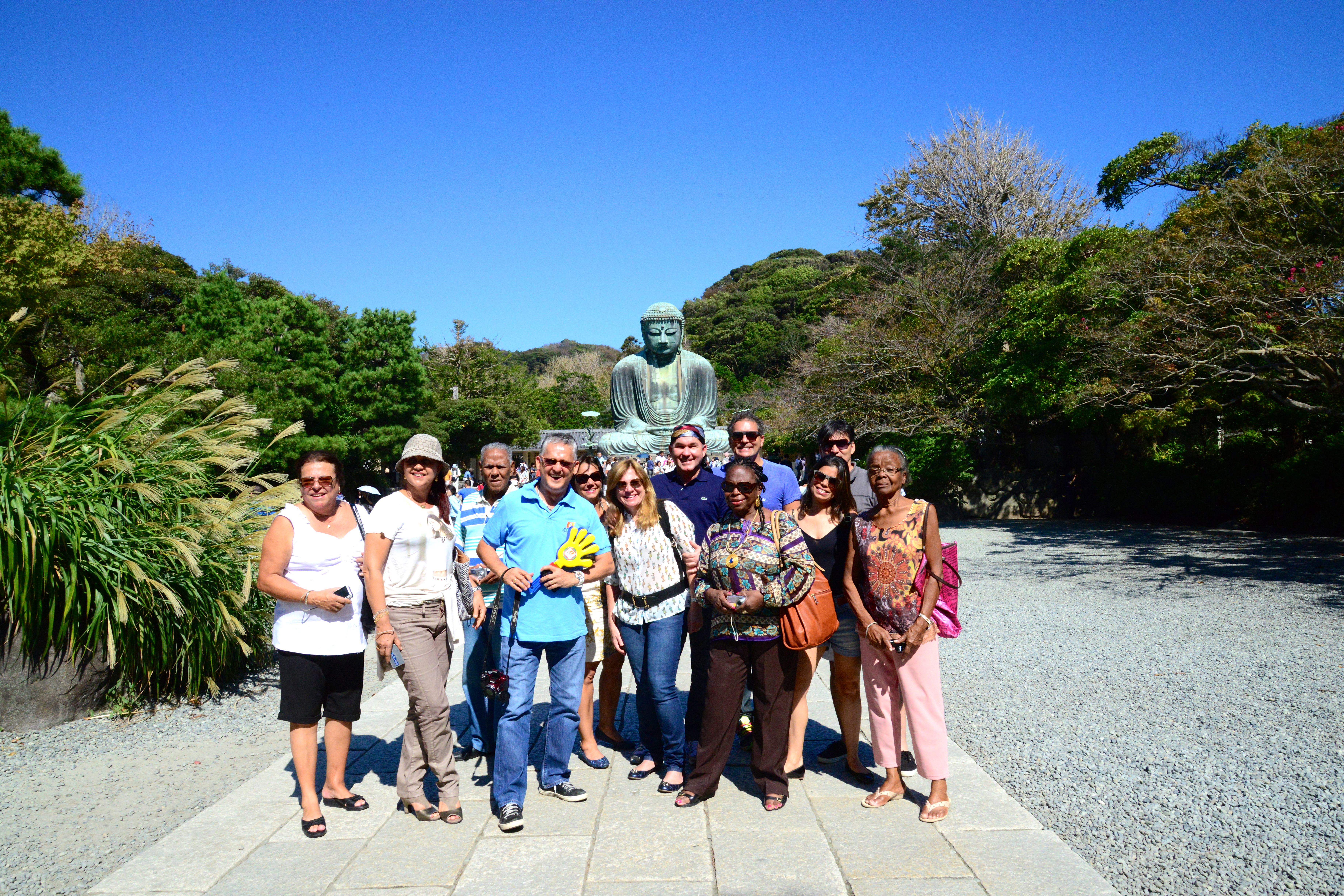 Saímos às 9h para um tour em direção à cidade de Kamakura, que fica a 60 km de Tóquio. Kamakura ficou conhecida com a cidade dos Xoguns, pois foi sede do poder do Japão medieval entre os séculos XII e XIV, quando os Xoguns dominavam, militarmente, o país a partir de Kamakura, enquanto que o Imperador, em Quioto, era apenas um personagem simbólico. A cidade fica entre a montanha e o mar, o que configura uma localização estratégica e protegida.