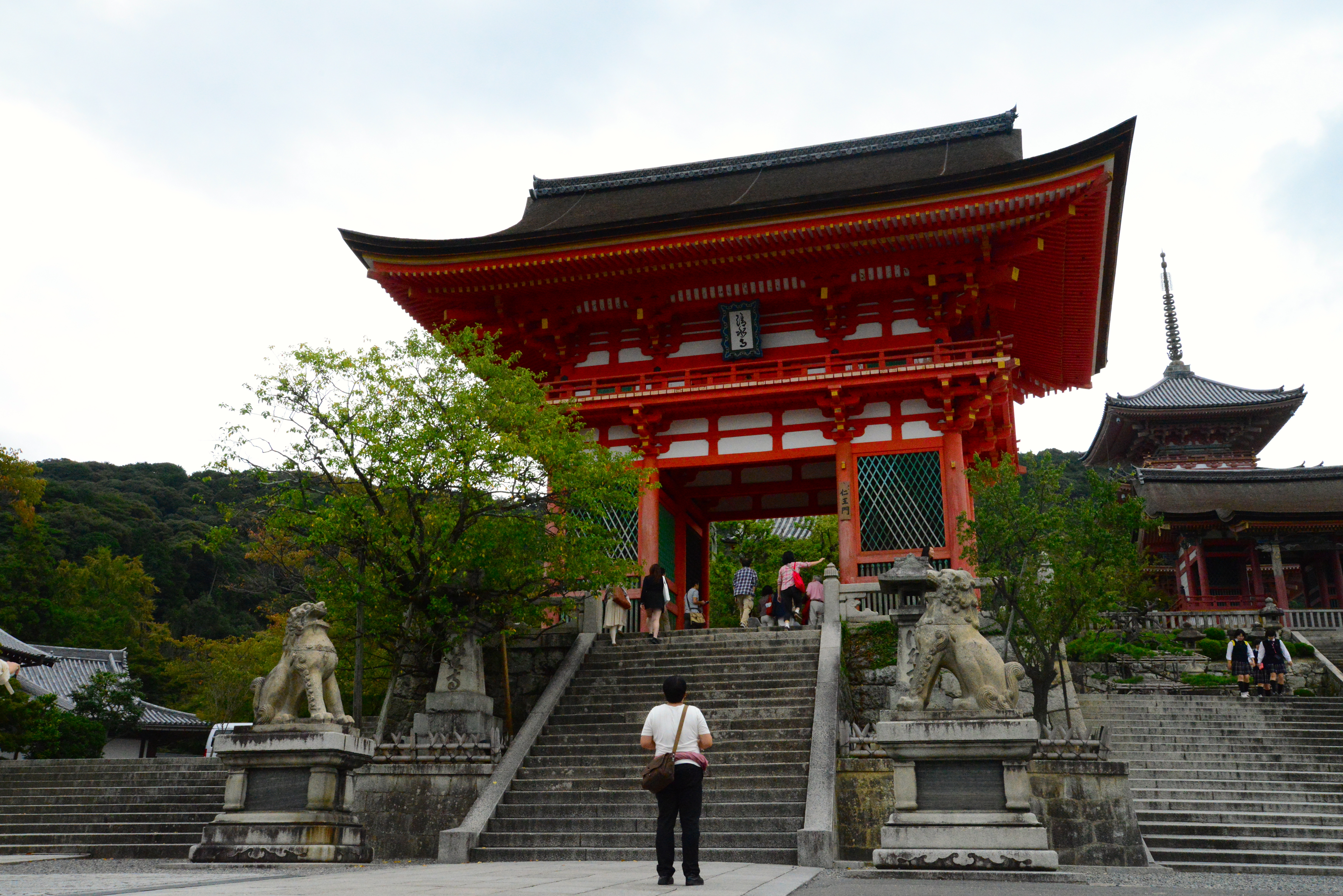 O primeiro templo que visitamos, ainda em Quioto, foi o Kiyomizu-dera, construído em 790 d.C., possui mais de mil anos de existência. Um grande complexo de templos de madeira e o mais importante e famoso da cidade.