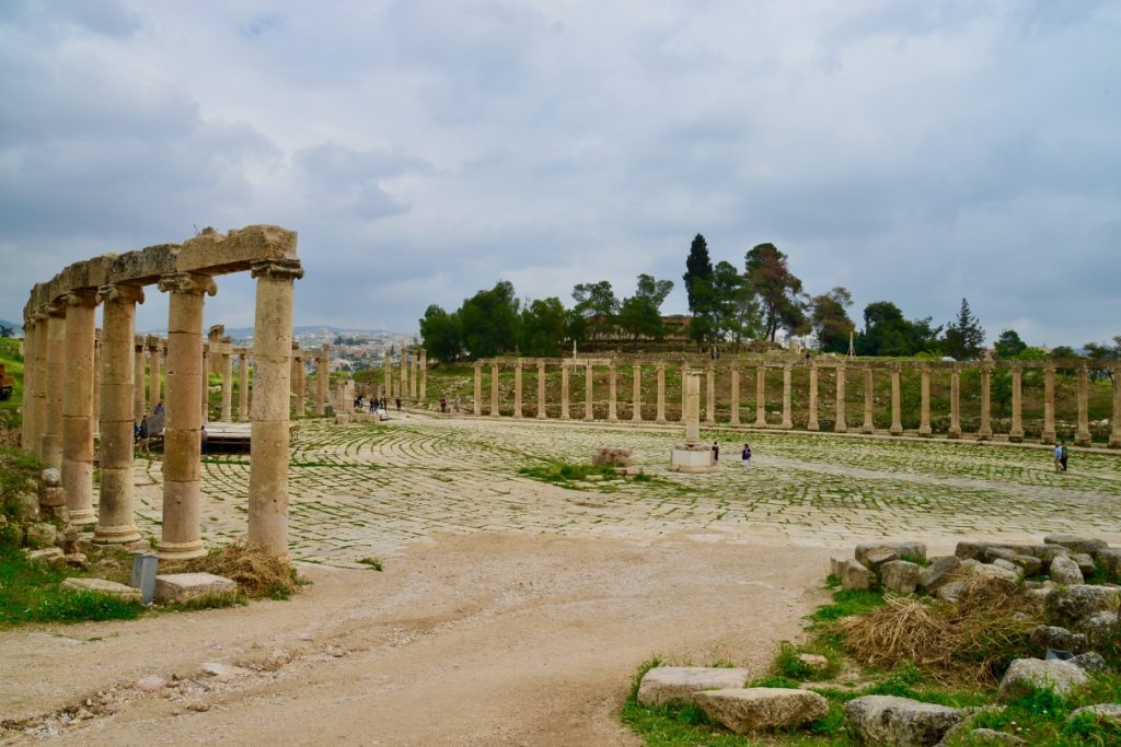 O grande Fórum Romano é um dos lugares mais impressionantes de Jerash. A Praça é oval o que lhe dá uma característica única para as cidades romanas. Faz a ligação entre o Templo de Zeus e o Cardo, perfeitamente alinhados.