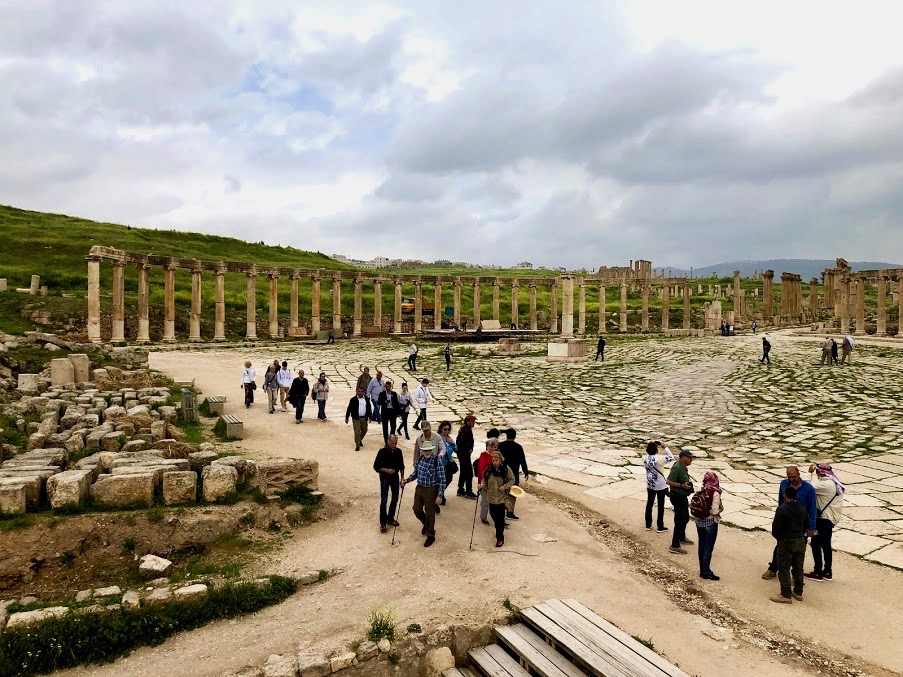Depois seguimos para Jerash, 50 km a norte de Amã. Na chegada a Jerash, entramos no sítio histórico pelo Jerash Visitor Center, onde existe um mercado de artesanatos e lembranças da Jordânia. É o lugar ideal para adquirir os lenços jordanianos ou uma garrafinha de areia colorida como lembrança da região.