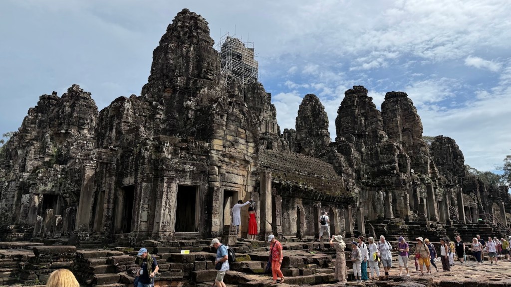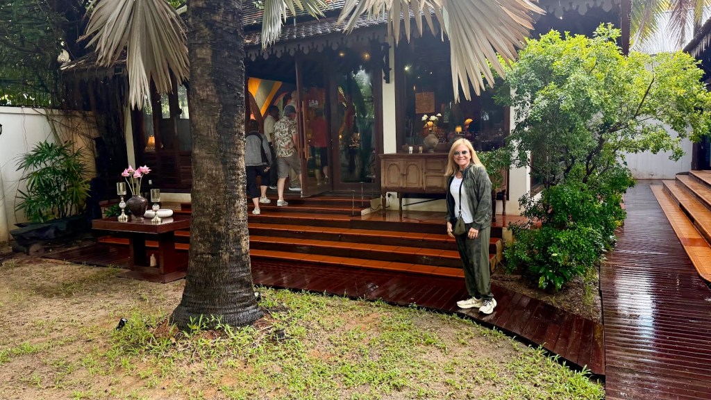 Ficamos três noites hospedados no Sofitel Angkor Phokeethra Golf & Spa Resort, um excelente hotel, com cara de resort tropical, localizado no coração de Siem Reap. É um dos hotéis mais elegantes e bem avaliados do Camboja. Inspirado na arquitetura colonial francesa, combina jardins tropicais, espelhos d’água e ambientes que remetem à estética clássica da Indochina. Os quartos são amplos e confortáveis, o serviço é impecável e a piscina central cria um clima de refúgio tranquilo após as visitas aos templos. Além disso, o resort conta com um spa renomado e acesso ao campo de golfe Phokeethra, oferecendo uma experiência sofisticada e relaxante, ideal para quem busca conforto sem abrir mão da atmosfera cultural de Angkor.