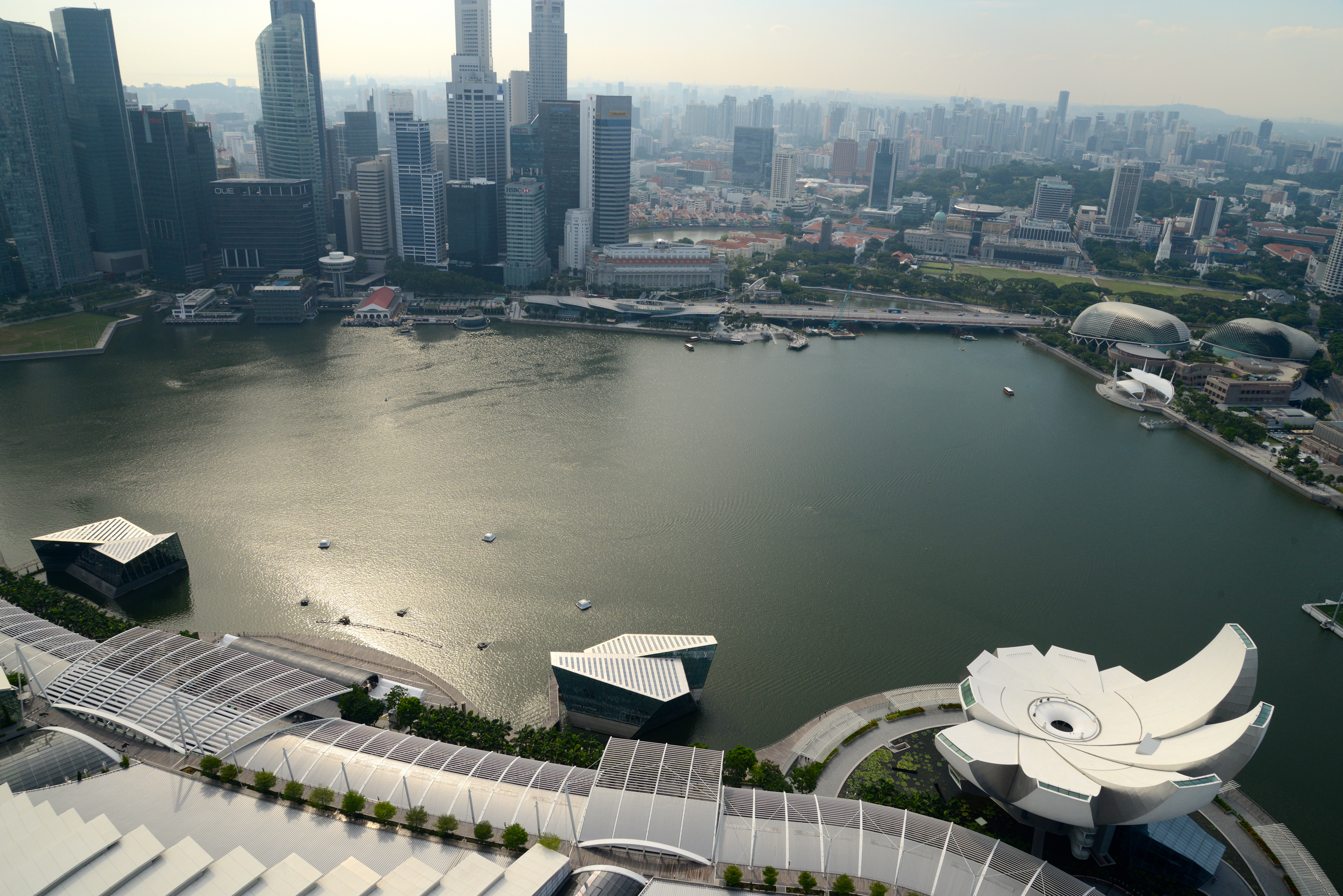 Fomos para o Península Excelcior Hotel, com uma boa localização e um 4 estrelas razoável. Às 10 da manhã já estávamos prontos para sair. Teríamos 3 dias em Singapura e queríamos aproveitar ao máximo. Saímos caminhando em direção à Marina Bay, a referencia principal da cidade. Uma área de expansão urbana moderna, de onde se tem as melhores vistas do “Sky Line” de Singapura.