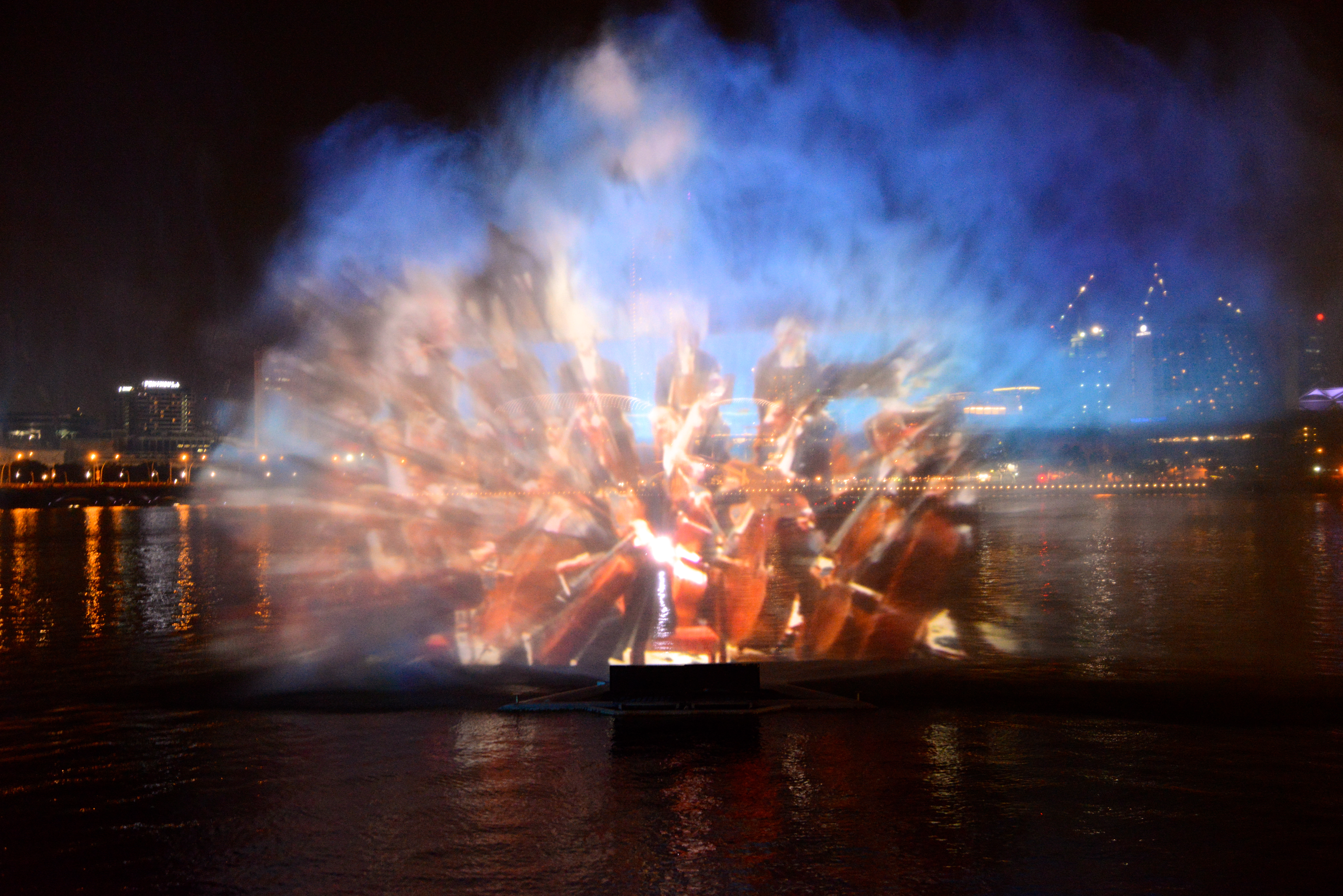 Um conjunto de fontes luminosas e cortinas de água, com interferência de luzes e projeções criam um show de tecnologia e funciona como mais um atrativo turístico de Singapura.