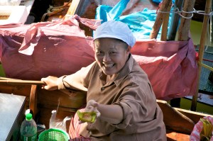Ao redor do mercado flutuante, a feira continua e não é um local apenas para turistas. Os tailandeses compram aí e o turista é uma conseqüência.