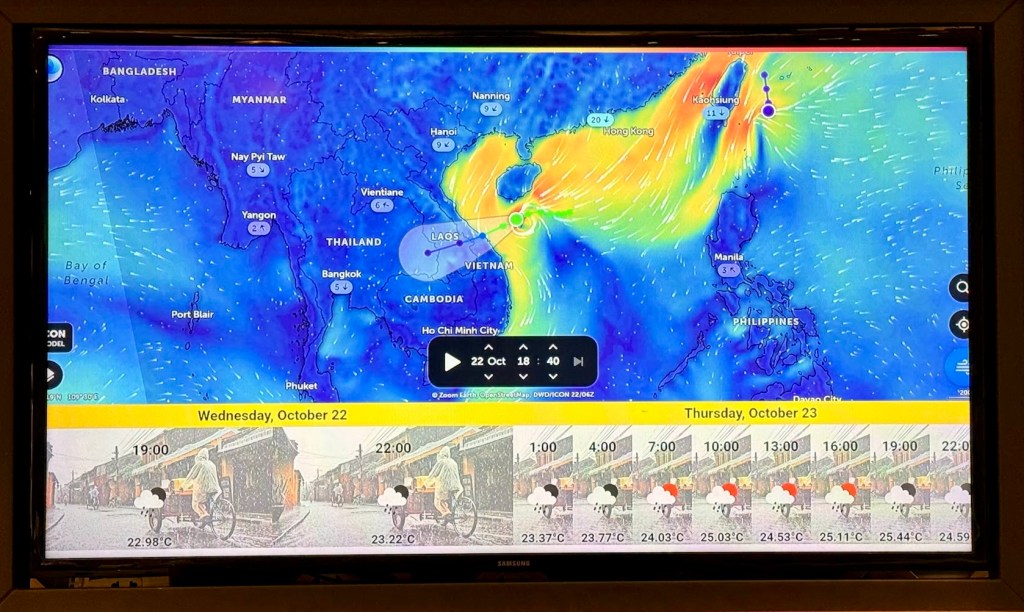Na temporada de 2025 para o Sudeste da Ásia, os tufões foram especialmente ativos e severos, e o Vietnã foi um dos países mais afetados. Segundo relatórios que tínhamos acesso, mais de três potentes tufões atingiram ou passaram próximos à costa vietnamita entre agosto e outubro. O Typhoon Kajiki trouxe ventos de até 166 km/h e chuvas que causaram evacuações em massa, o Typhoon Bualoi, em setembro, provocou inundações e deslizamentos, com estimativas preliminares de danos em US$ 300 milhões. Em nossa viagem, que incluía passagens por Huế, Da Nẵng e Hoi An, o clima poderia apresentar chuvas intensas, alagamentos e atividades fluviais ou costeiras suspensas, tínhamos que voltar.