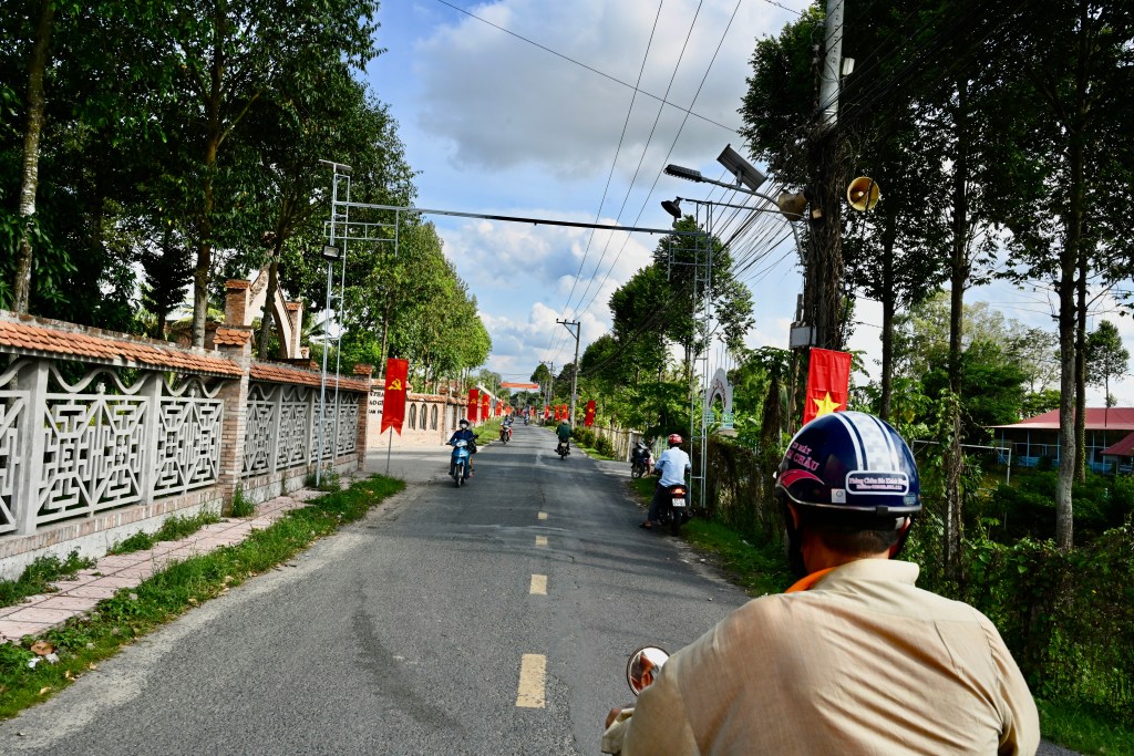À tarde fomos para a Ilha Gieng, no coração do Delta do Rio Mekong, um refúgio de paz e simplicidade. O acesso é feito por pequenas embarcações que deslizam lentamente entre os canais, cercados por coqueiros e campos férteis. A vida na ilha segue um ritmo tranquilo, marcada pela agricultura, pelo som das cigarras e pelo sorriso acolhedor dos moradores. Caminhar por suas trilhas é observar o Vietnã rural em sua forma mais pura, casas simples, hortas cuidadas e templos antigos. A presença francesa ainda pode ser sentida nas igrejas coloniais, lembrando o passado missionário da região. É um passeio que combina natureza, história e espiritualidade.