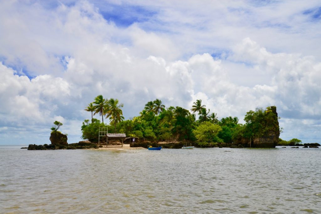 Estávamos hospedados na Pousada Villa Balidendê em Barra Grande e decidimos fazer um passeio pela Baía de Camamu. Contratamos uma lancha privativa e partimos da praia em frente ao nosso hotel. Fizemos uma primeira parada na Ilha da Pedra Furada, a principal parada dos passeios de barco pelo interior da baía.