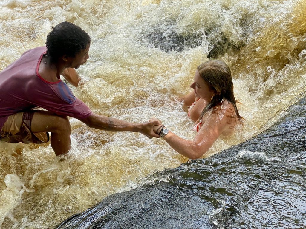 Alguns moradores da região ficam por aí para ajudar aos turistas que querem aproveitar as águas da cachoeira, em troca de alguma gorjeta. Nas corredeiras ainda é possível tomar um banho de hidromassagem natural aos pés da queda d’água.