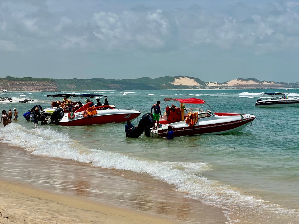 Estávamos na Praia da Pipa, em Timbau do Sul, no Rio Grande do Norte, hospedados na Pousada Sombra e Água Fresca. Contratamos um passeio de barco de meio turno, para avistar as praias da região da Pipa, a partir do mar. O objetivo era seguir até a Baía dos Golfinhos. Um dos programas mais famosos e imperdíveis dessa região.