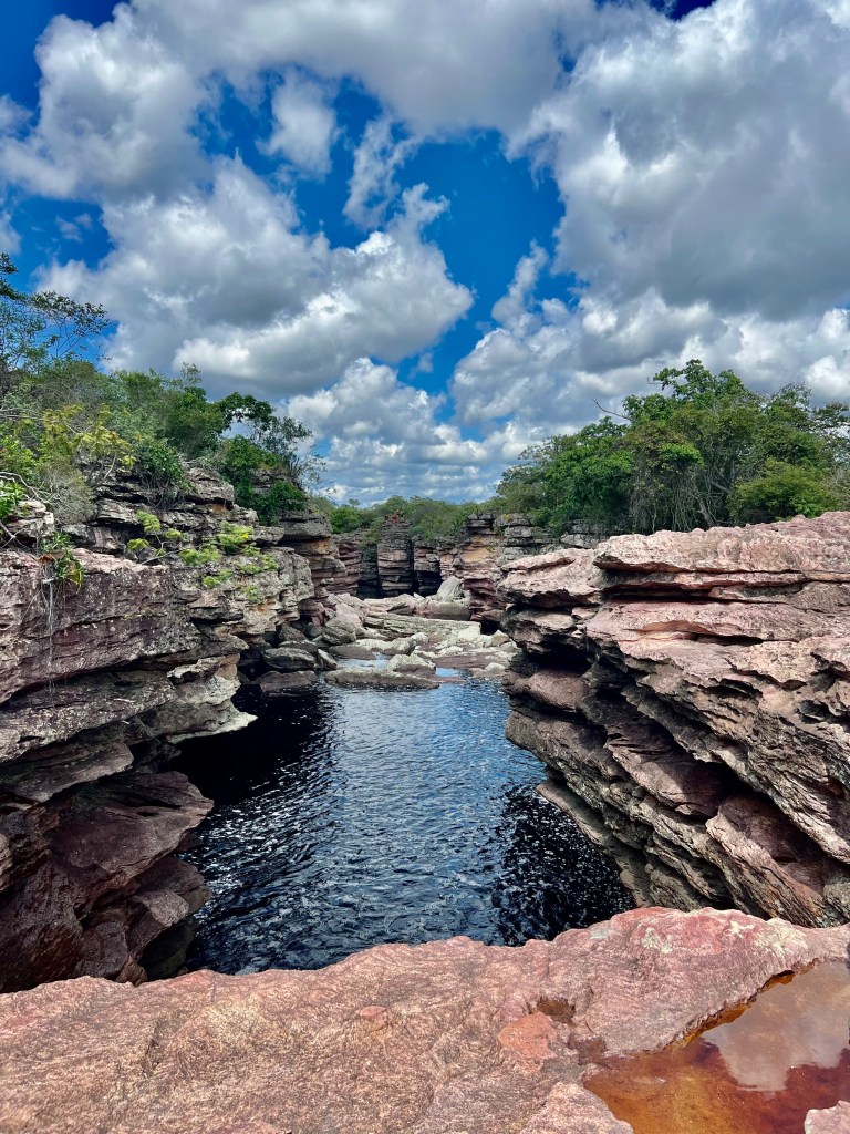 Fizemos uma nova parada no Cânion do Buraquinho. A imensidão das rochas e o trabalho que a erosão fez ao longo do tempo geológico já chama a atenção e nos enche de expectativa sobre o que virá.