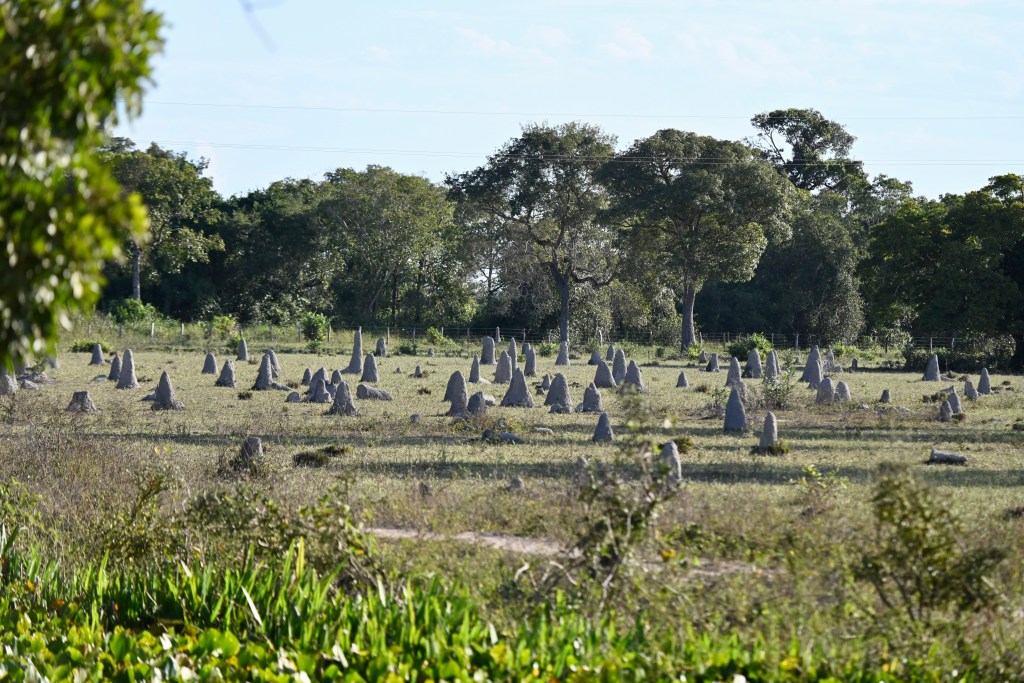 Paramos o carro no meio de uma mata rala da propriedade e decidimos seguir a pé para ver se encontrávamos com os tamanduás. O nosso objetivo principal daquele dia. Depois de uma hora de caminhada, começamos a ver pegadas frescas de onças. Deu medo. O medo aumentou, quando descobrimos pegadas de filhotes acompanhando a onça adulta. Decidimos voltar e não mais arriscar, pois estávamos vulneráveis.