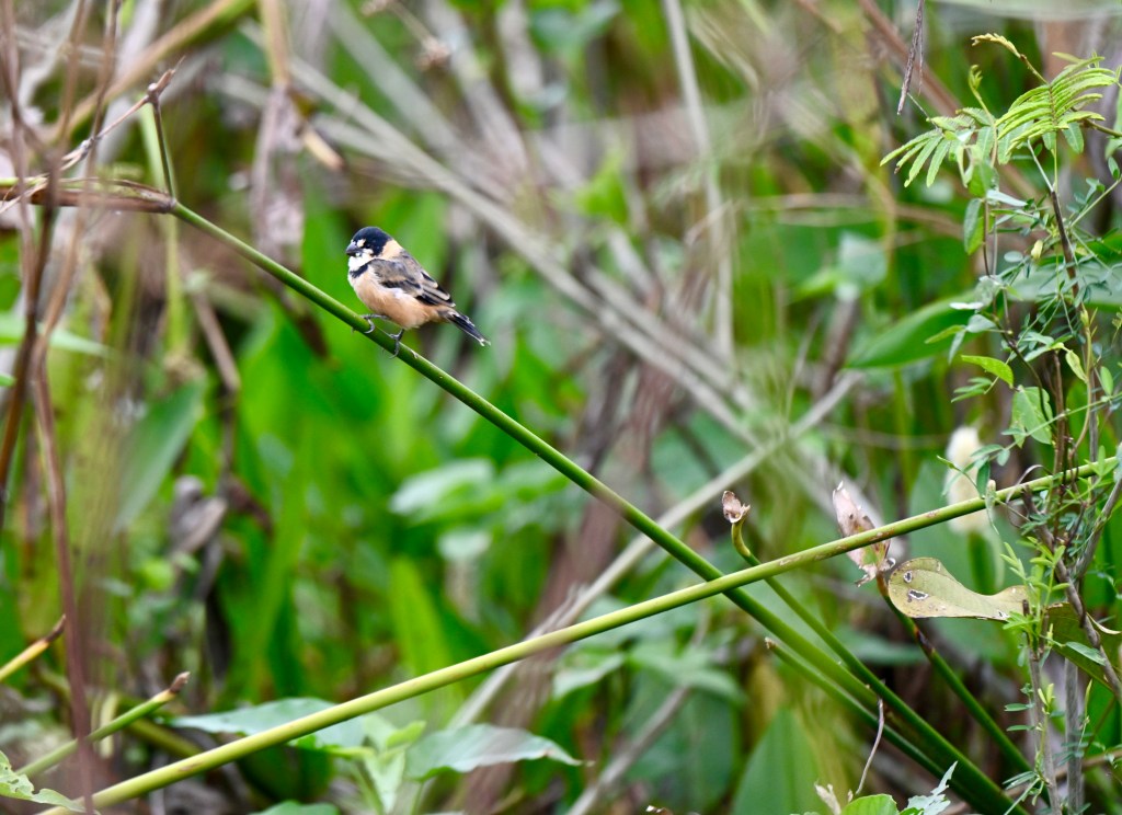 Estávamos hospedados na Pousada Piuval, fazendo um safari fotográfico com foco nas aves da Fazenda. O Coleiro-do-brejo é um pássaro pequeno, com plumagem de coloração vistosa, mesclando tons de laranja, marrom e preto, com aproximadamente 11 centímetros de comprimento, ameaçado de extinção, que vem desaparecendo de algumas regiões do Brasil, sobretudo por conta da captura ilegal para criação em cativeiro.