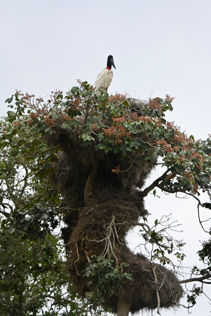 Na segunda parte do dia de um safari fotográfico pela Pousada Piuval, no início da Estrada Parque Transpantaneira, a dez quilômetros da cidade de Poconé, no estado do Mato Grosso, paramos para admirar um grande ninho de Tuiuiu. O tuiuiú, ou jaburu, é a ave símbolo do Pantanal e a maior ave voadora desse habitat. É da família das cegonhas. Pode chegar a 1,40 metros de comprimento, 1,60 metros de altura e pesar até 8 kg. A sua envergadura, medida de asa aberta, de ponta a ponta, chega a 3 metros e o bico, 30 cm.