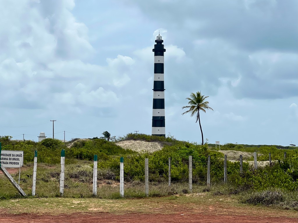 Na saída de Gostoso, fizemos um pequeno desvio para passar em frente ao Farol do Calcanhar, onde o litoral brasileiro deixa o sentido norte/sul e passa a seguir o sentido leste/oeste. É exatamente aí que o litoral brasileiro “faz a curva”. O Farol do Calcanhar possui 62 metros de altura e é considerado o segundo maior farol do Brasil. É um ponto icônico no litoral brasileiro.