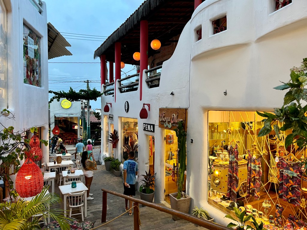 À noite, saímos para circular pela vila, bastante movimentada, sobretudo nos finais de semana. A partir das 18 horas, a principal rua do centrinho de Pipa fica interditada para carros e uma multidão circula para todos os lados. A vila atrai pessoas do mundo inteiro. Artistas de rua animam ainda mais o ambiente. Pousadas, bares, lojinhas, hotéis e restaurantes sofisticados compõem a infraestrutura de Pipa.
