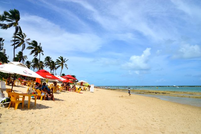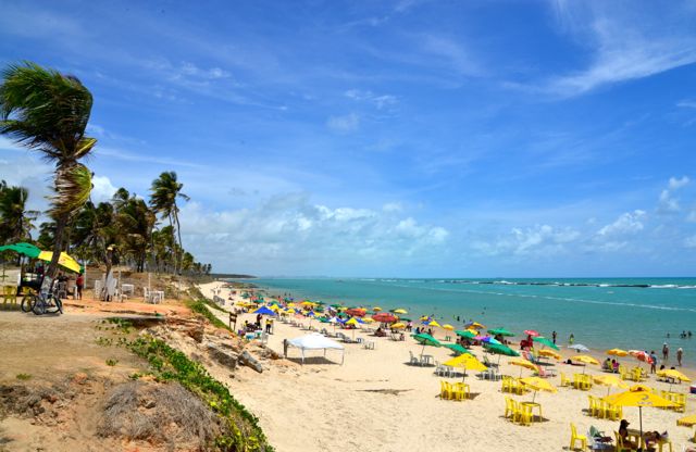 Depois de aproveitar um pouco da Praia do Francês, pegamos o carro e seguimos para a Barra de São Miguel. É a praia ao lado, a 5 km da Praia do Francês. Da mesma forma, a Barra de São Miguel também desenvolveu uma grande infraestrutura para o turismo. As grandes barracas de praia são o forte do lugar.