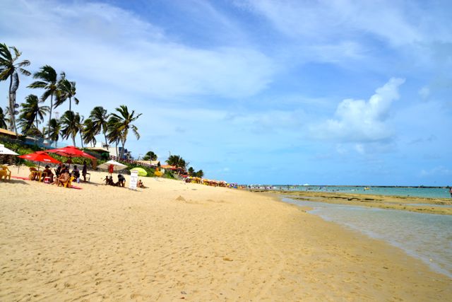 A praia em frente é excelente. Como toda a área da Barra de São Miguel, o banho de mar é protegido por um extenso recife, que possibilita águas calmas e mornas. Ficamos por aí até o meio da tarde e voltamos para o Hotel Gungaporanga para aproveitar o fim de tarde na piscina.