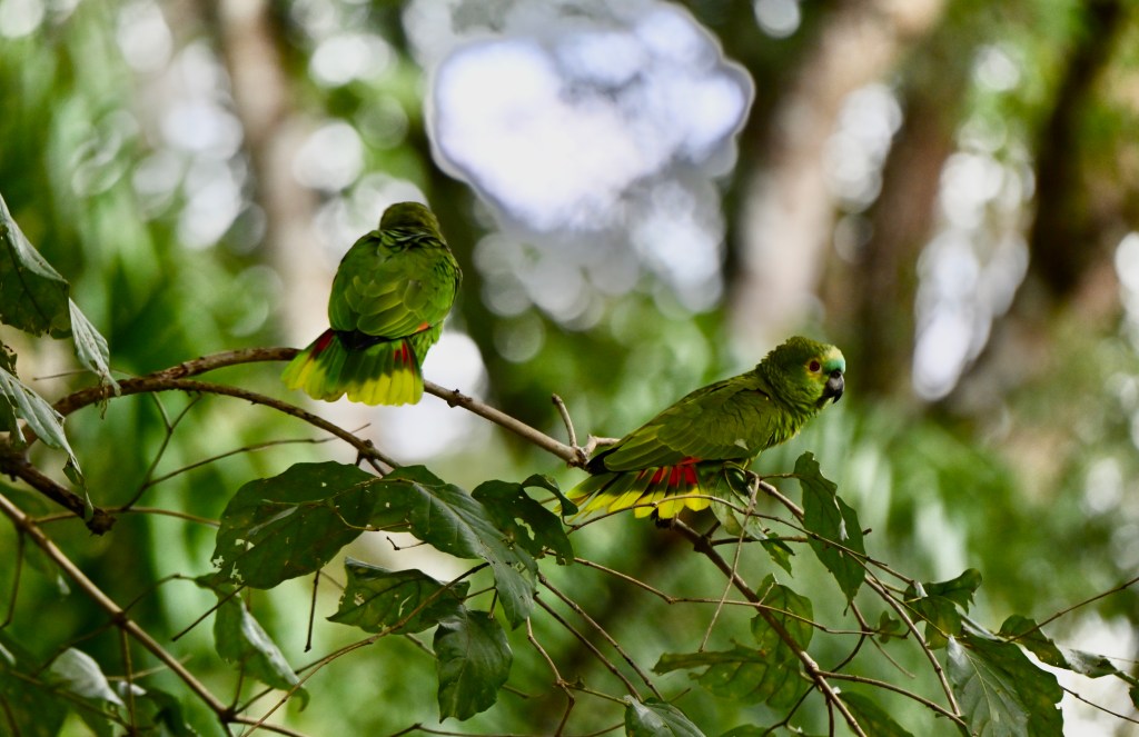 O papagaio-verdadeiro também nos acompanhava pela trilha, saltando de galho em galho, a cada árvore. Mede 37 centímetros de comprimento. É facilmente domesticado e convive bastante com humanos, inclusive em áreas urbanas. Ver o papagaio por entre as árvores do Pantanal tem um outro significado.