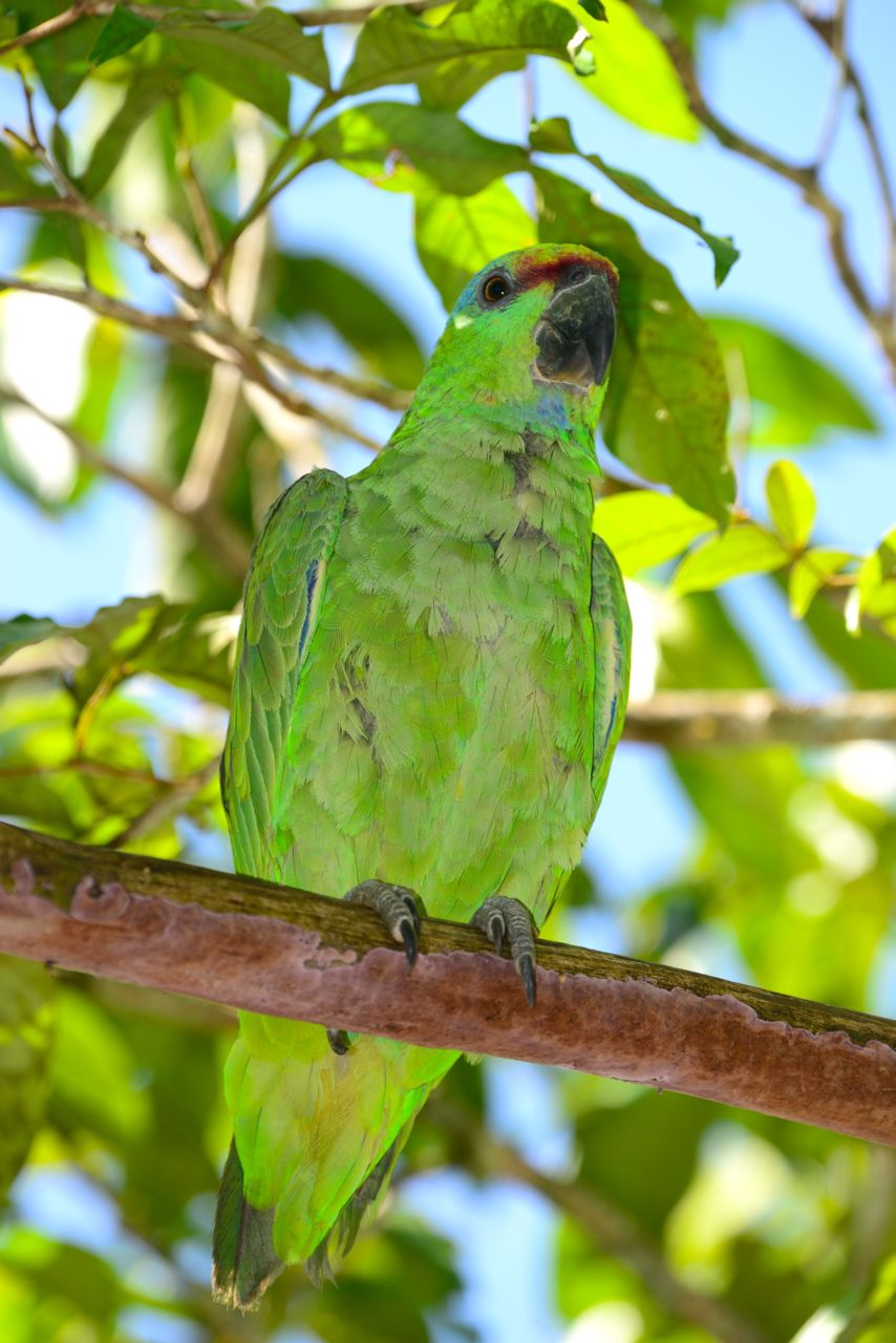 Os Papagaios são da família das araras. Existem várias espécies diferentes (testa vermelha e testa amarela). São também monogâmicos e se alimentam de frutos. Costumam se adaptar à vida com os homens e se tornam pássaros de criação.