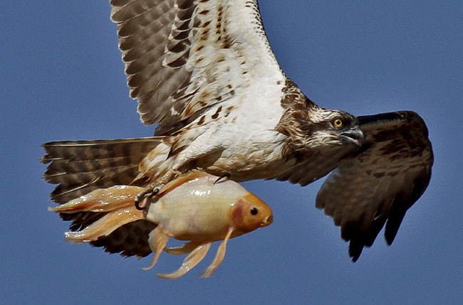 A Águia Pescadora não é uma exclusividade da Amazônia, é uma águia migratória, nasce no Canadá, mas migra para a Amazônia em determinadas épocas do ano.