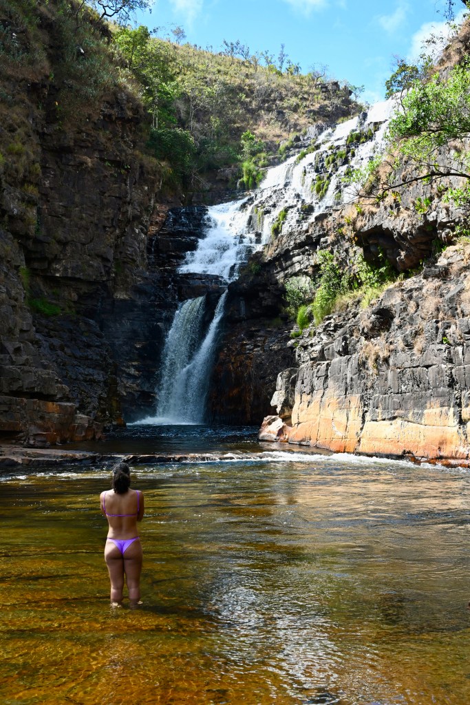 Seguimos direto para a Cachoeira Almécegas 1000, onde tomamos um banho de água gelada. O banho é essencial para recuperar o fôlego e seguir adiante.