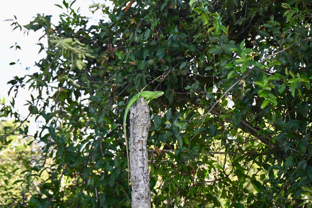 Logo no início dessa nossa jornada, vimos uma Iguana-verde, ou iguana-comum sobre uma estaca de cerca que contemplava a paisagem. As Iguanas são endógenas da América do Sul, aparecem em quase todo o continente e são comuns no Pantanal. Pode medir até 1,8 metros de comprimento e pesar até 9 kg. A cauda é maior que o corpo.