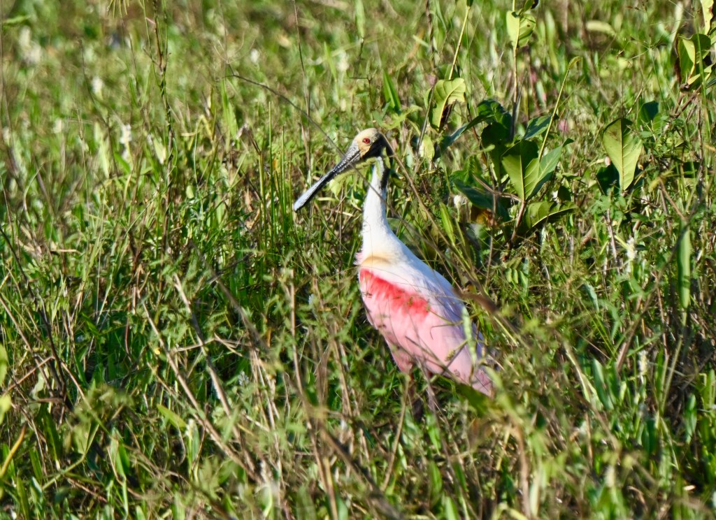 No meio da estrada que leva à Pousada Pouso Alegre, paramos para contemplar uma grande área alagada, onde a variedade de aves era imensa. Chamou a atenção, um Colhereiro, uma bela ave que adquire uma coloração rosada. O bico em forma de colher com aproximadamente 20 cm, deu origem a nome. Pode chegar a 87 cm de comprimento e até 1,4 kg.