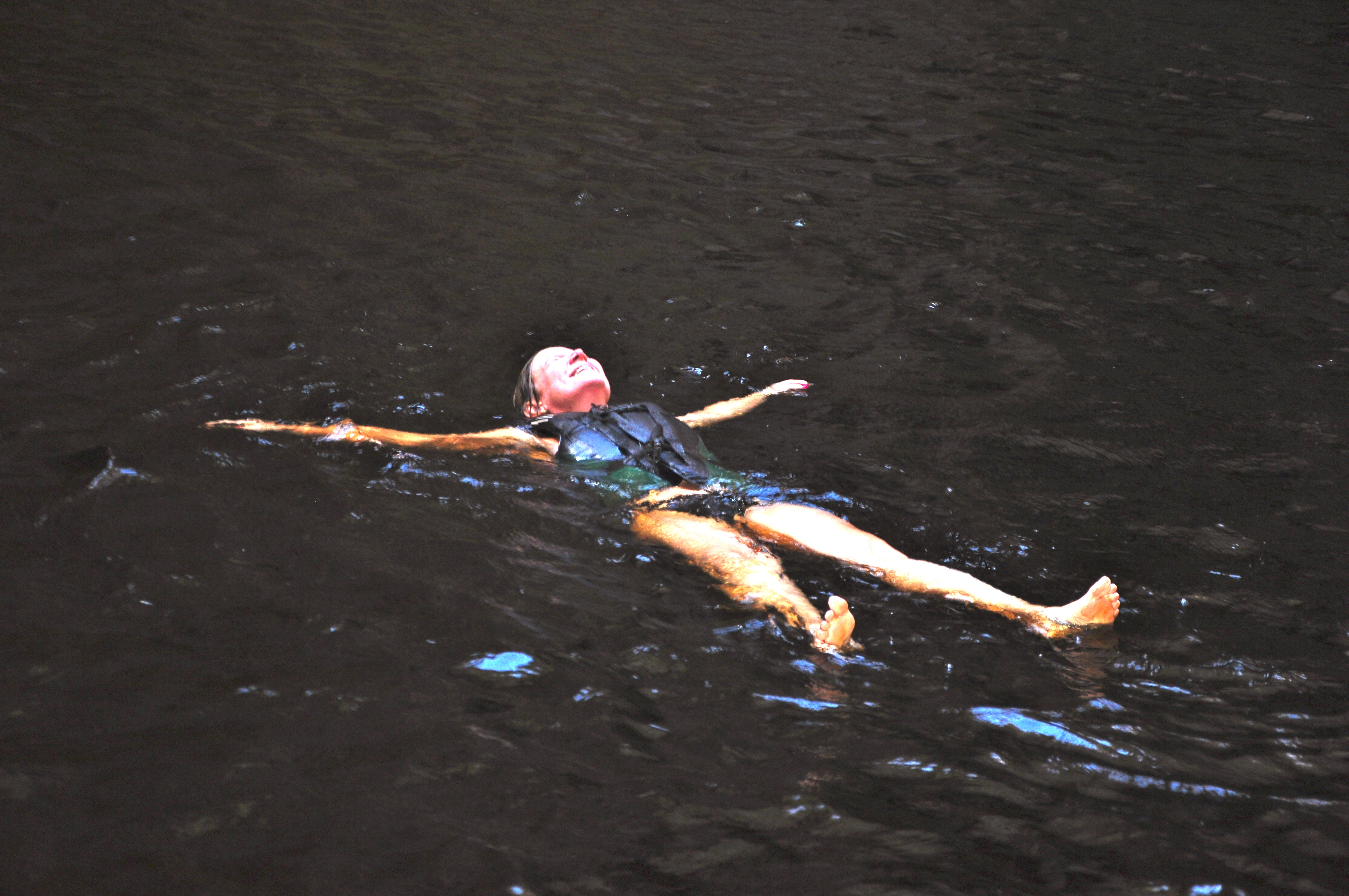 A água é gelada, mas não dá para chegar aqui e não cair. Nadamos até a base da cachoeira e ficamos por algum tempo tomando banho naquele ducha maravilhosa, com a sensação de que “o melhor lugar do mundo é aqui e agora”.