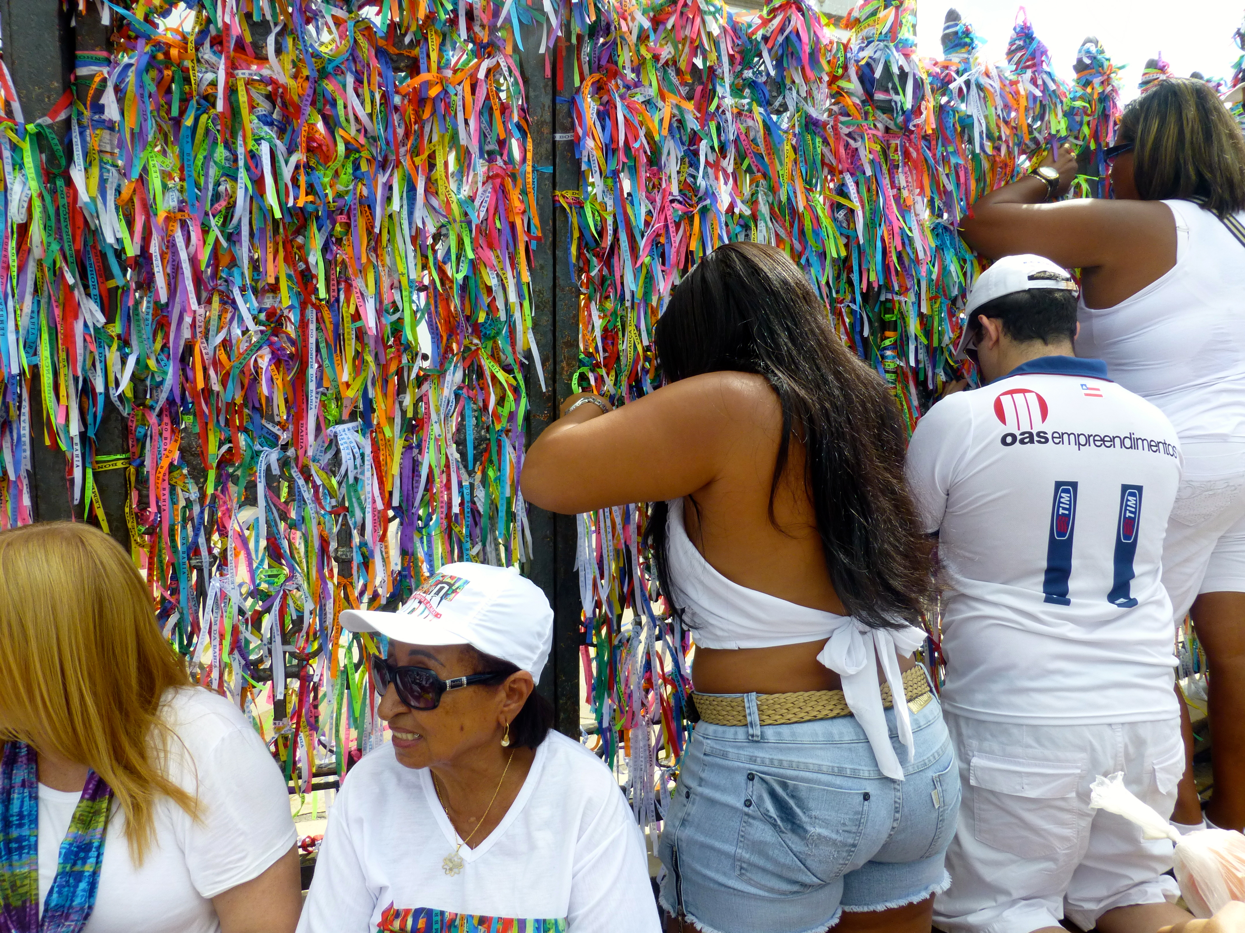 As fitas do Bonfim são disputadas por todos, que as amarram no braço com três nós e a cada um nó dado, um pedido feito com a esperança de que será realizado. No sincretismo religioso, Senhor do Bonfim foi identificado pelos adeptos do candomblé como Oxalá, o maior de todos os orixás.