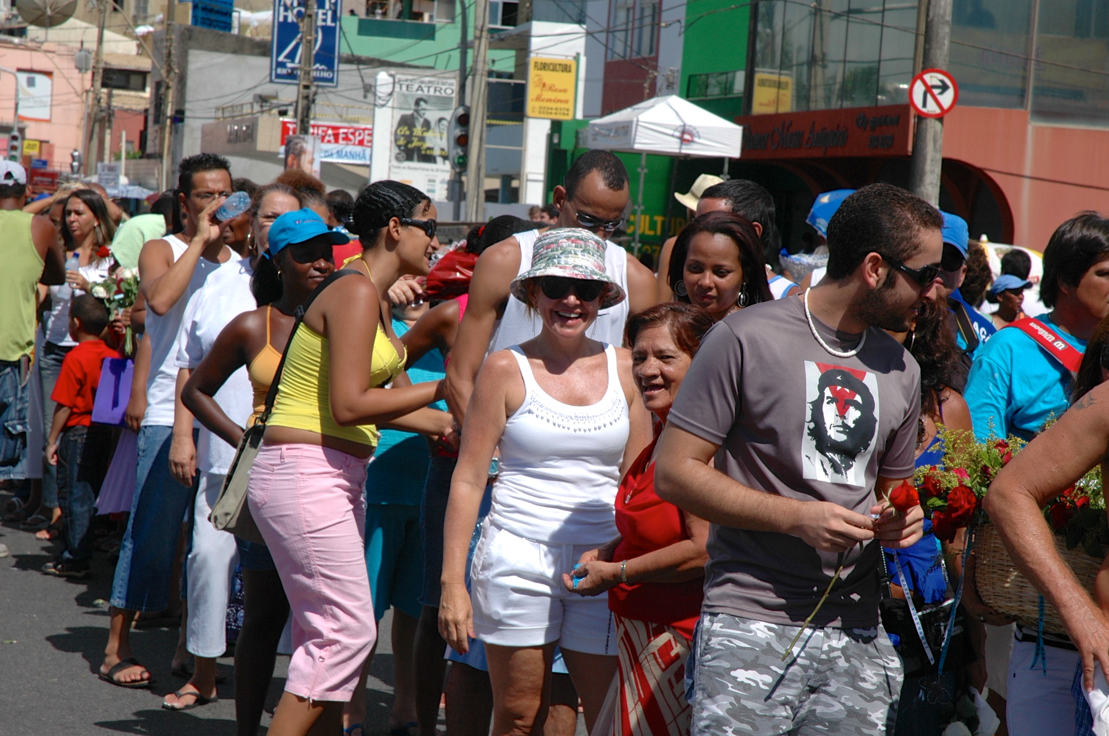 Filas enormes para levar presentes para Iemanjá.A festa acontece na Praia do Rio Vermelho, onde uma colônia de pescadores mantem a casa de Iemanjá ao lado da Igreja de Santana.