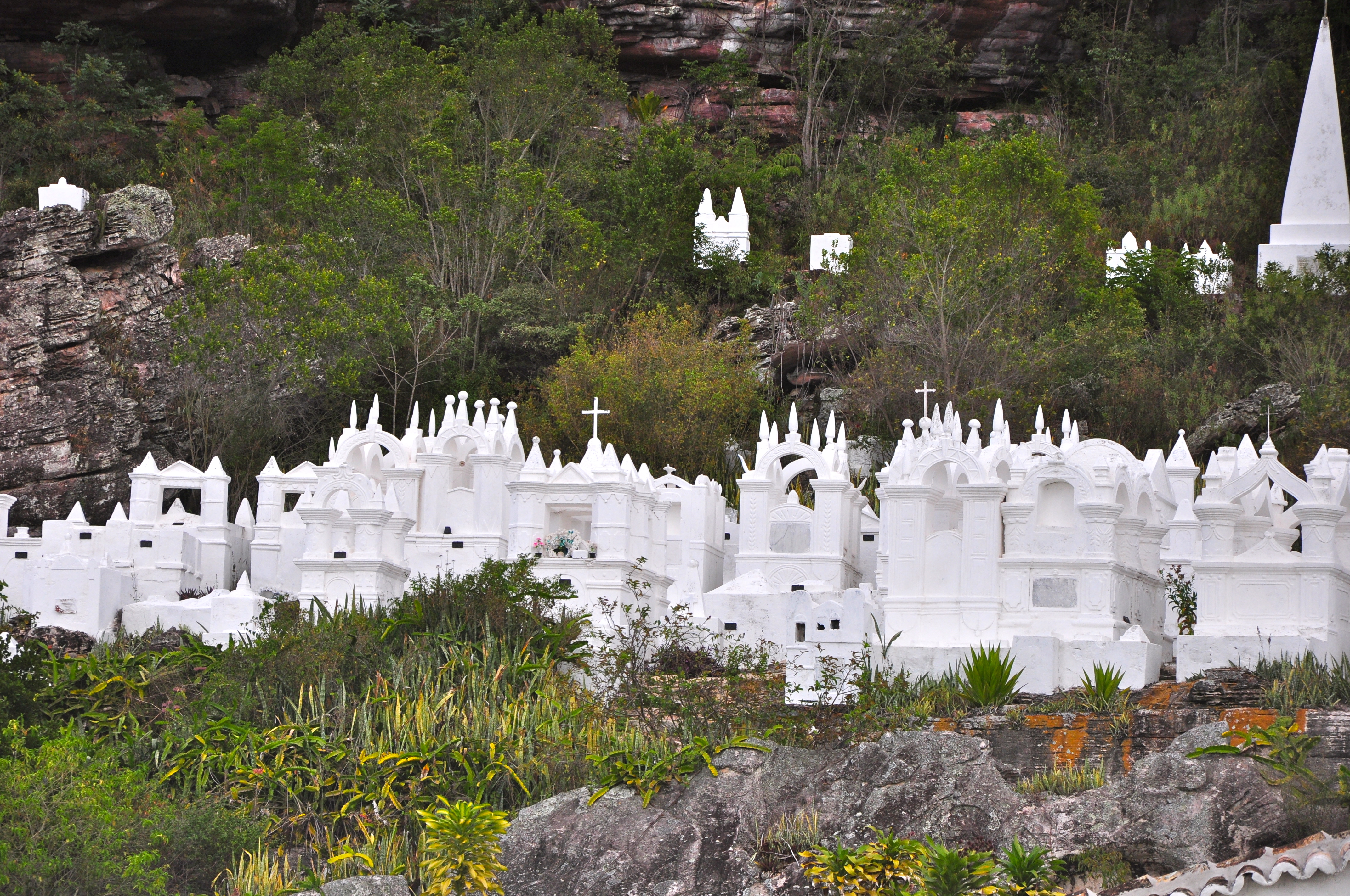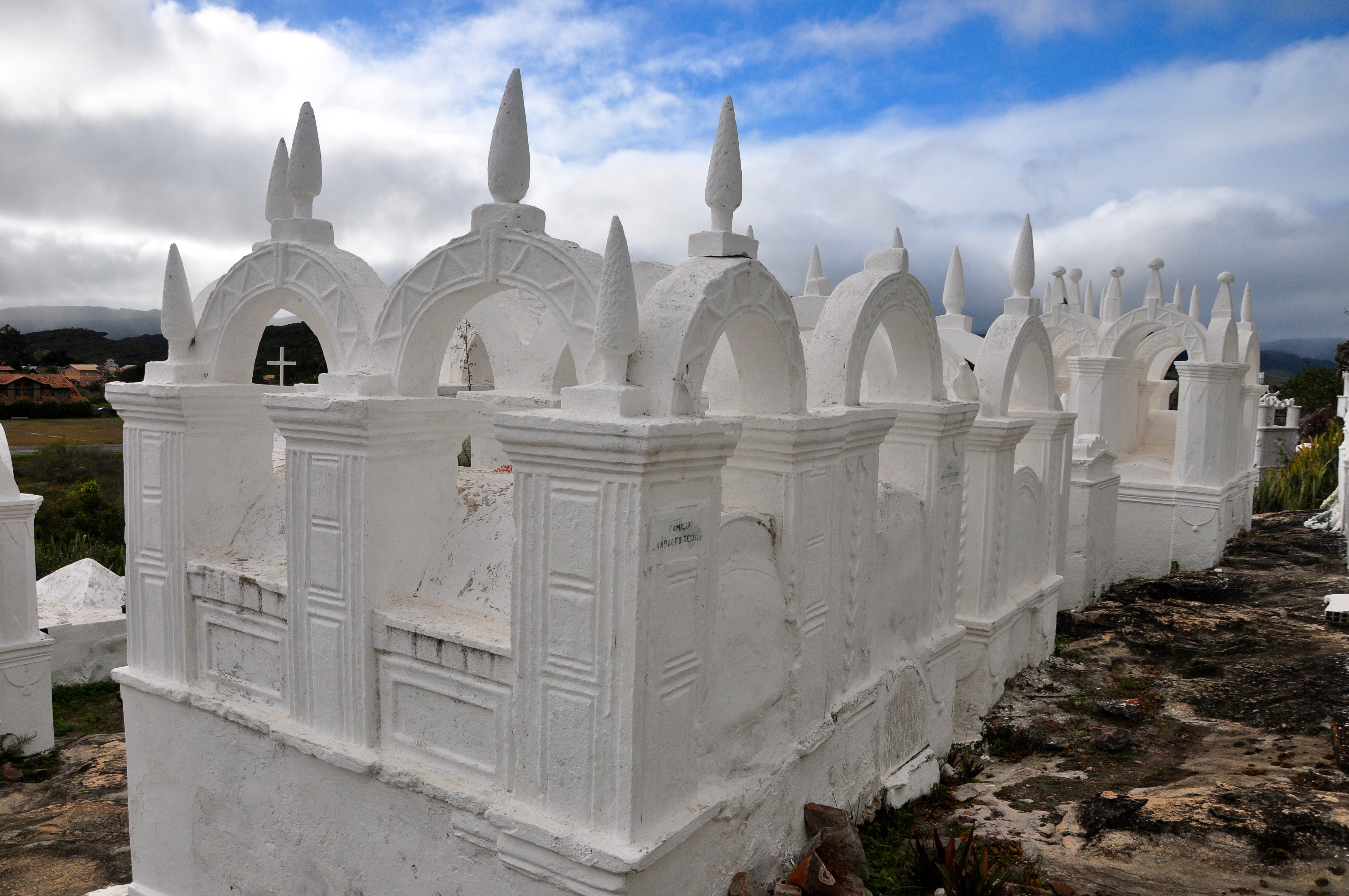 Depois que fotografamos as janelas de Mucugê, seguimos para o Cemitério Bizantino, uma das atrações da cidade. Os túmulos e mausoléus do cemitério de Mucugê possuem formas góticas, pontiagudas e pitados de branco, criam uma atmosfera especial.