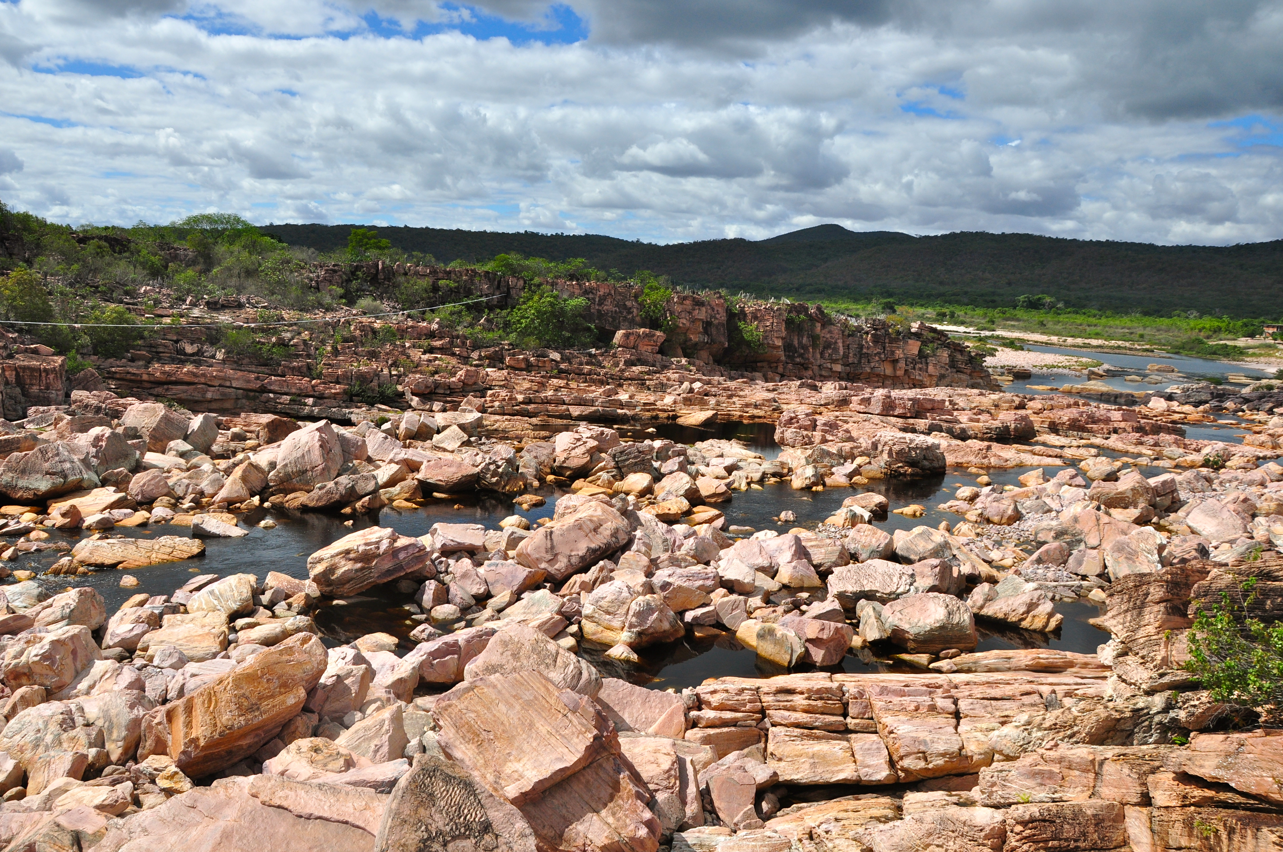 Circulamos pela cidade, fizemos algumas fotos e seguimos adiante em direção a Mucugê. No caminho paramos na estrada para observar o leito quase seco do Rio Paraguaçu, o maior rio totalmente baiano e motivo de orgulho regional.