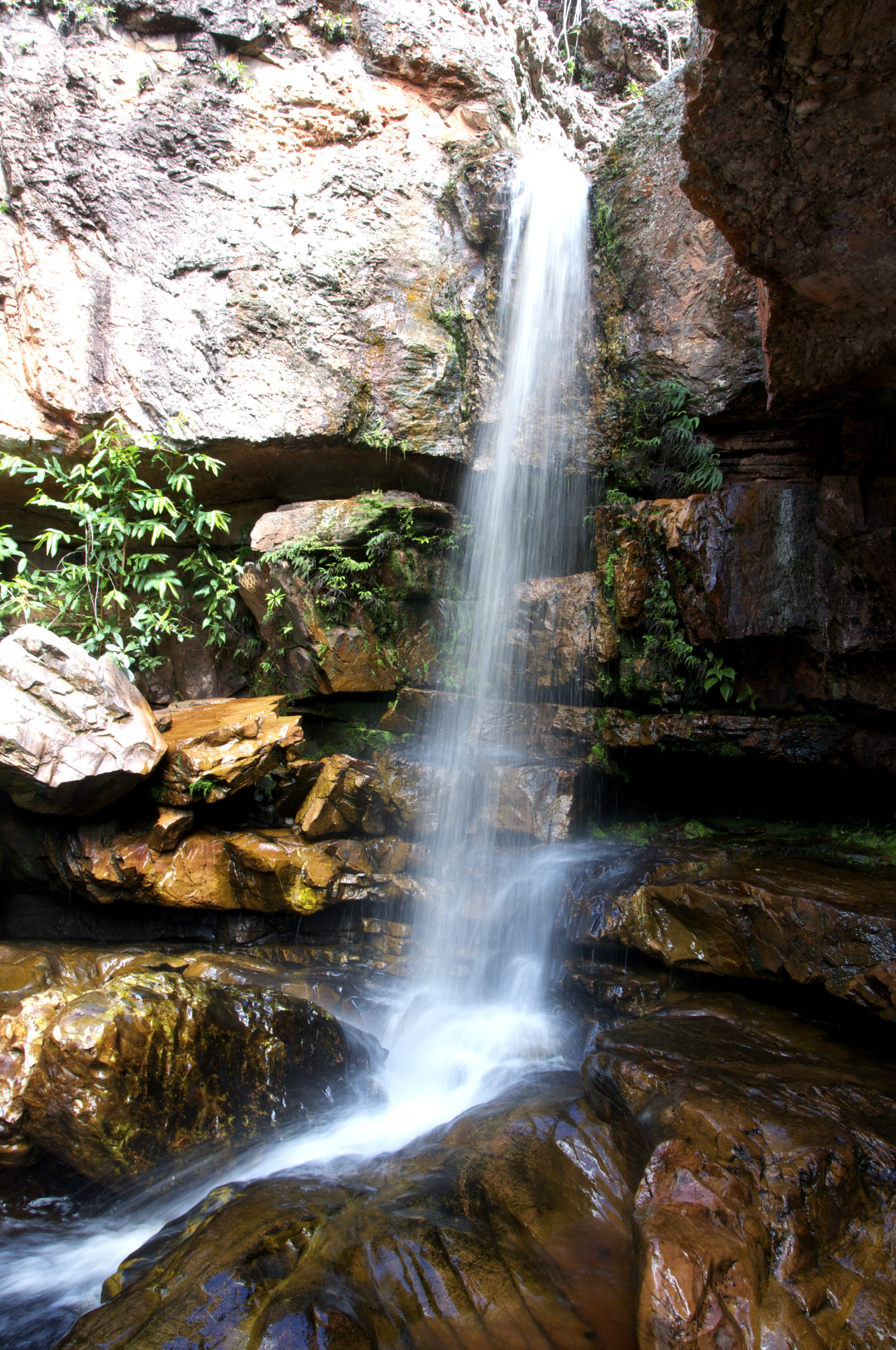 Seguimos a trilha após os Salões de Areia até a cachoeirinha, uma pequena queda d’água que existe no caminho. Segundo as informações do nosso guia (Paulo Renato), no passado ela já foi maior, porém obras de captação de água para o Hotel Portal de Lençóis diminuíram bastante o volume de água da Cachoeirinha.
