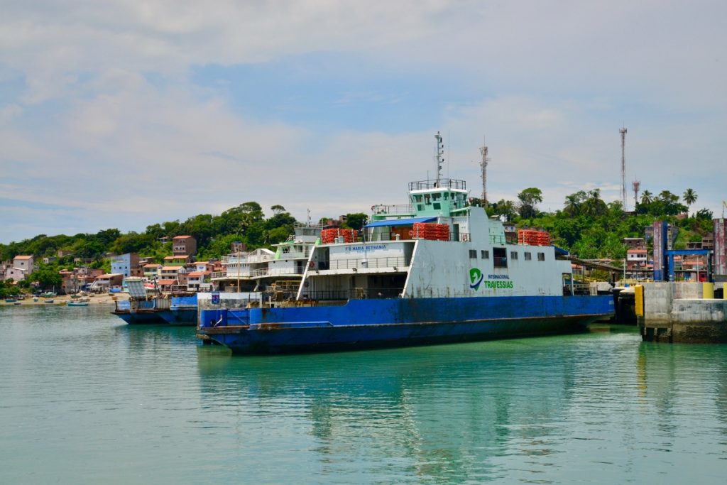O início da viagem a partir de Salvador se dá com a travessia da Baía de Todos os Santos utilizando o sistema Ferry Boat, operado pela Internacional Travessias, que liga o Terminal Marítimo de São Joaquim, na Cidade Baixa ao Terminal de Bom Despacho na Ilha de Itaparica. Utilizamos o sistema de “hora marcada” para fazer a travessia e não correr o risco de ficar preso em filas intermináveis, que nos dias de pico (não era o casso da nossa viagem), podem durar até 6 horas de espera. O sistema de transporte é péssimo. Os terminais são sujos e feios. As embarcações encontram-se em péssimo estado de conservação e são também sujas e malcuidadas. A travessia leva aproximadamente 50 minutos.