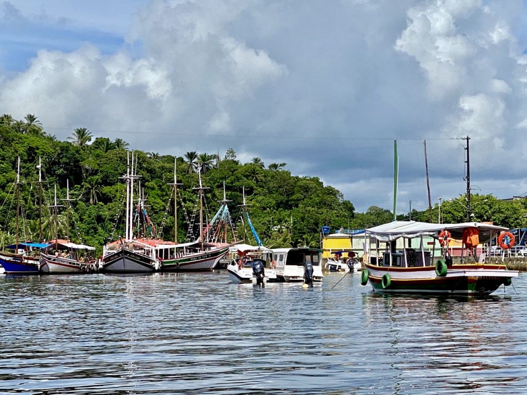 Quando chegamos em Camamu, seguimos direto para a Marina São Jorge, a maior e mais bem estruturada da cidade. Deixamos o carro aí na Marina, a um custo de R$30,00 por dia e seguimos de lancha para Barra Grande (R$300,00, numa lancha privativa). A travessia leva aproximadamente 40 minutos nas águas calmas da Baía de Camamu.