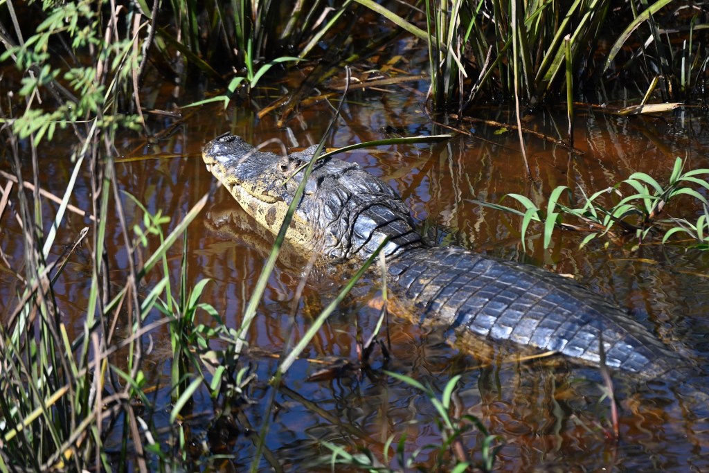 A Transpantaneira é uma estrada cênica que possibilita a avistagem de uma grande quantidade de animais do Pantanal. Aves, pássaros, répteis e mamíferos diversos. O primeiro animal que vimos foi um jacaré. Descobrimos logo a seguir que eles estão por todos os lados e não deixaríamos mais de ver. Em todas as lagoas na beira da estrada os jacarés aparecem.