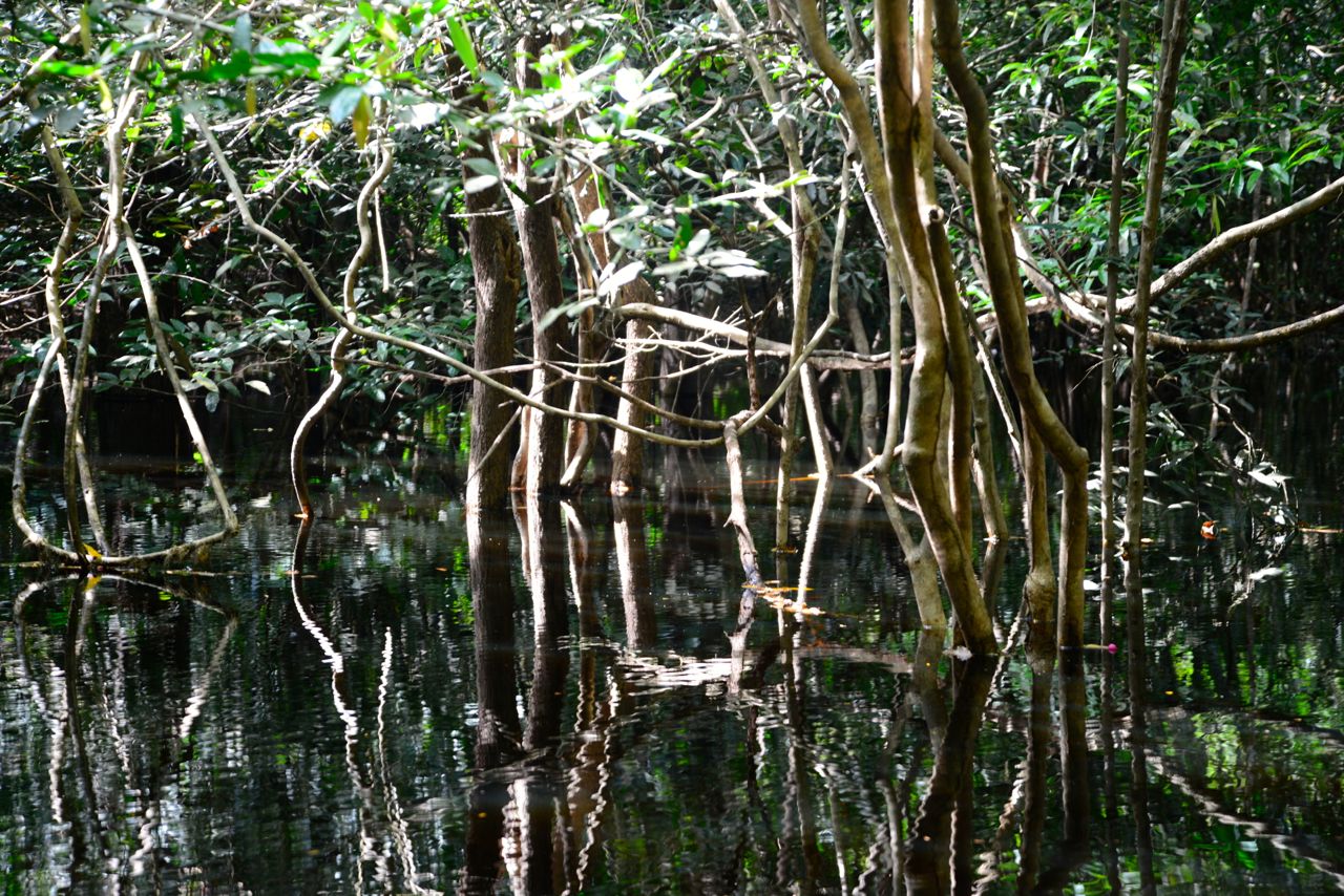 Saímos da plataforma dos Botos e voltamos para o almoço no navio Iberostar Grand Amazon, passando mais uma vez por entre Igarapés e Igapós.