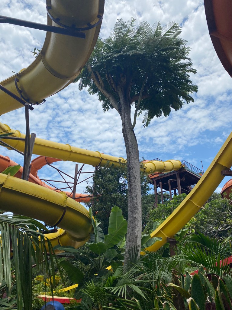 Uma das principais atrações da região do Arraial D’Ajuda é o Eco Parque. Um parque de águas localizado a 10 km do resort onde estávamos hospedados, na base do morro que leva à vila de Arraial D’Ajuda. Possui 70 mil metros quadrados de pura diversão familiar, direito a piscinas de ondas, tuboáguas, tirolesas e outras grandes atrações para crianças e para a família de uma maneira geral.