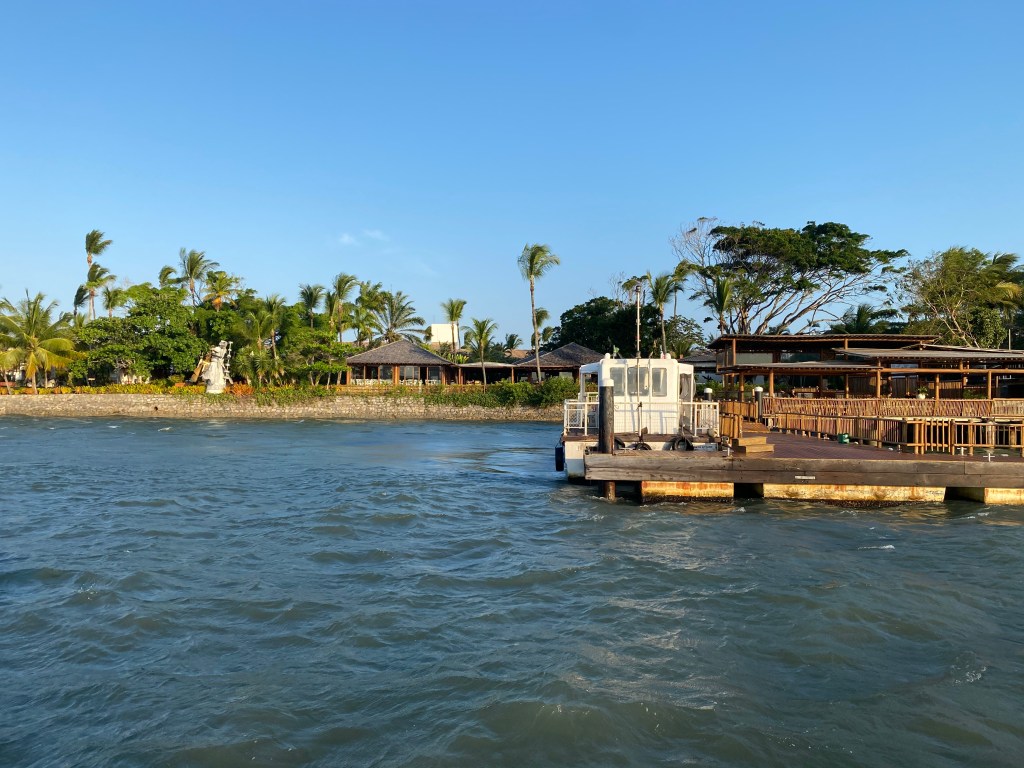O Arraial D’Ajuda Eco Resort tem um píer próprio, exclusivo para hóspedes. Pegar a balsa é como antecipar o check in do hotel. O Eco Resort estava seguindo todos os protocolos de proteção com relação à pandemia da COVID-19 e isso nos tranquilizou um pouco.