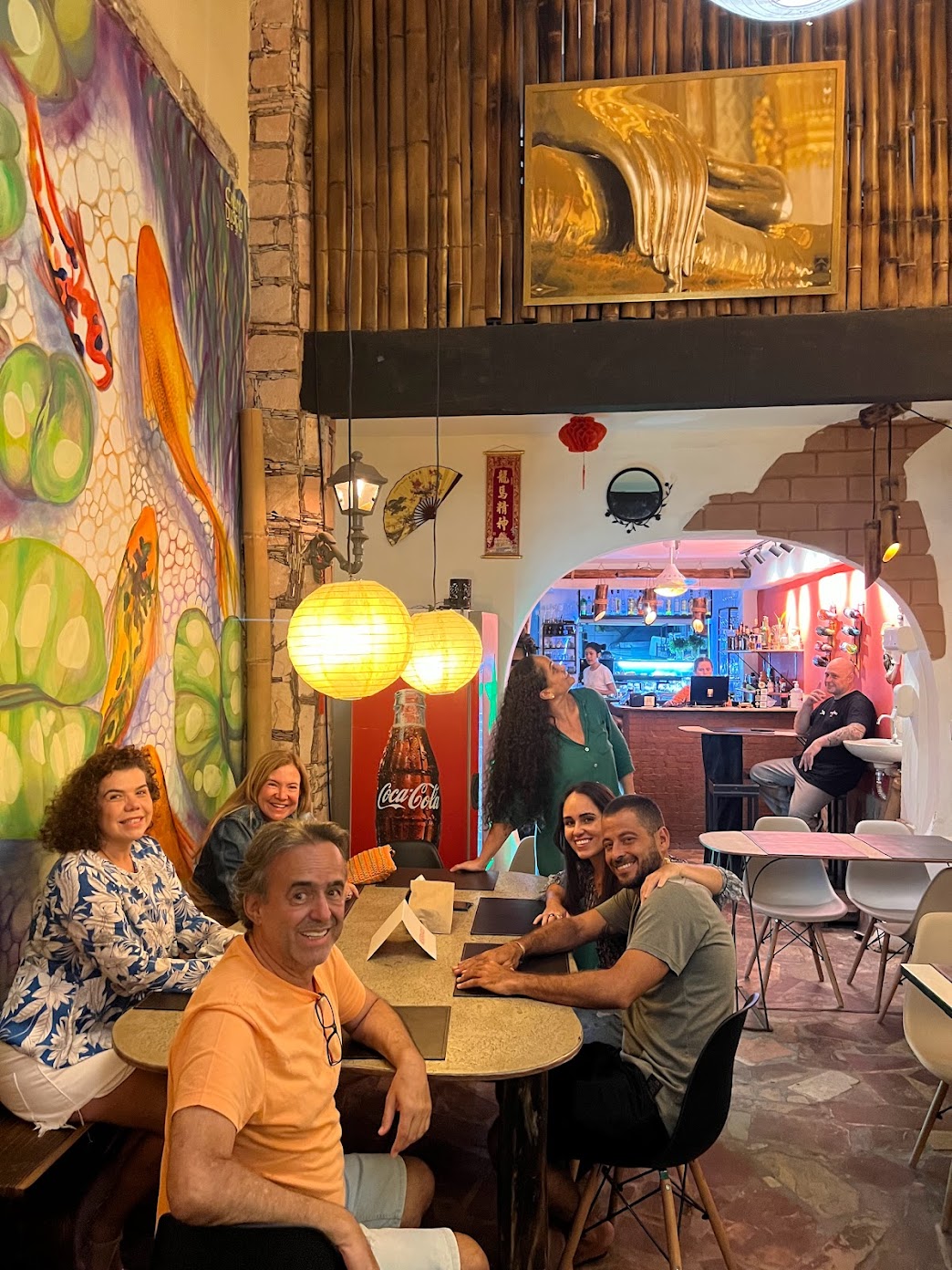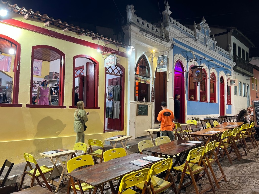 Apesar da chuva atrapalhar um pouco. Saímos para passear à noite, pegamos uma carona na kombi da Villa Pugliesi, que nos levou até o centro da cidade, na Rua da Baderna, o centro da boemia e gastronomia de Lençóis, onde fomos jantar no Santo Chico Sushi Bar, da querida amiga, Clarissa Torres. É sempre bom encontrar Clarissa. O Santo Chico é o principal Sushi Bar da Chapada.