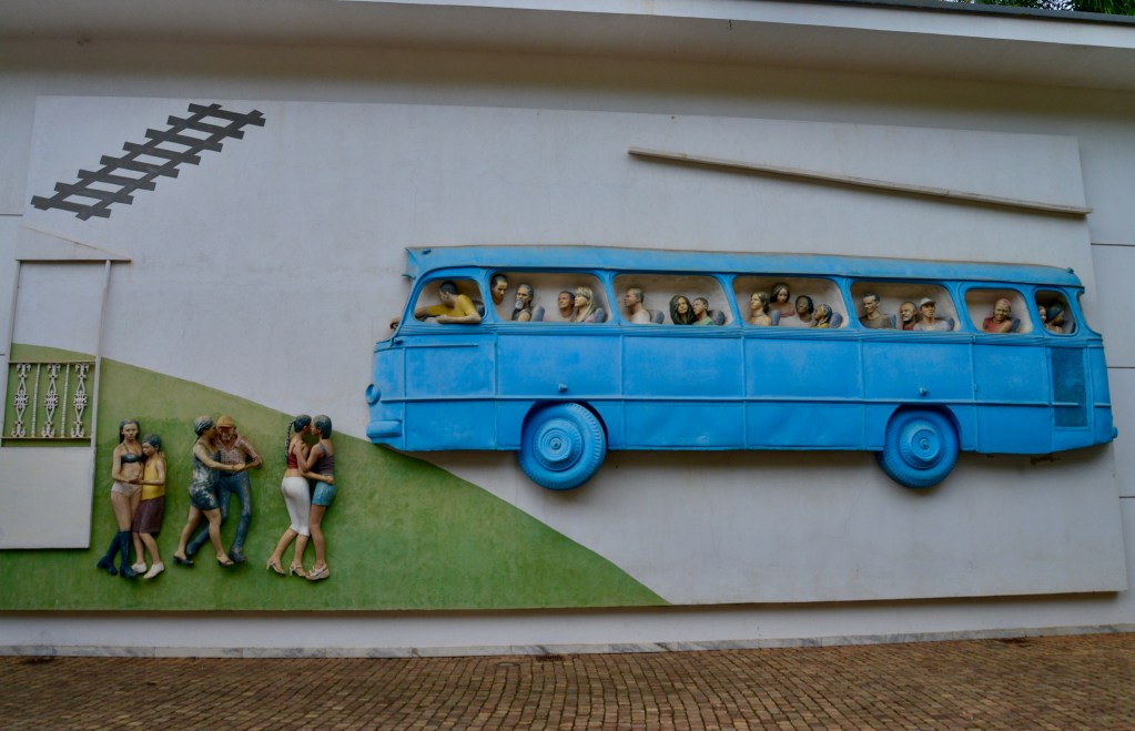 Essa obra fica logo na entrada do Instituto Inhotim. Ela faz referência à cidade de Brumadinho e à sua gente. A “Rodoviária de Brumadinho” de 2005 é formada por um ônibus em tamanho real, com personagens da cidade e que foram ligados à implantação do Instituto. Os artistas John Ahean (americano) e Rigoberto Torres (porto-riquenho) levaram dois anos para fazer os dois trabalhos.