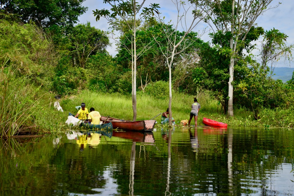 Descemos o fluxo das águas, numa canoa movida a remo, por uma trajetória de uma hora e meia. Os espelhos d’água são maravilhosos e estimulam a criatividade. O transporte em canoas é explorado pela Comunidade Quilombola do Marimbus.
