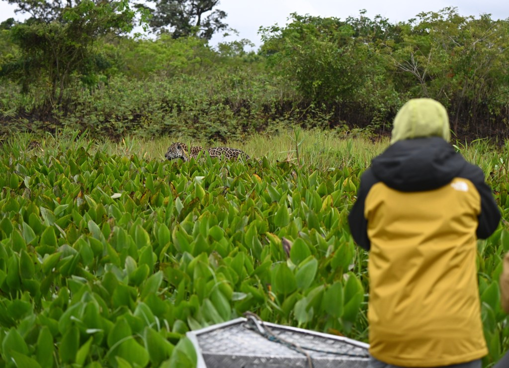 Estávamos em Porto Jofre, na Pousada Santa Rosa. A localidade fica próxima ao Parque Estadual do Encontro das Água e é considerada o melhor lugar do mundo para observação de onças-pintadas. Fomos lá para isso. Demos azar, pois entrou uma frente fria assustadora. A temperatura caiu de 37 graus para 7 graus em apenas um dia. Não estávamos preparados para um frio tão intenso e quase desistimos. Depois decidimos nos agasalhar melhor e aproveitamos mais os passeios. Faz parte do dia a dia dos viajantes. O frio intenso dificultou os programas, mas conseguimos sobreviver e foi muito bom.