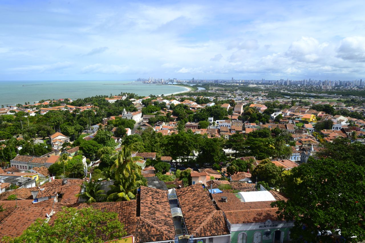 A cidade de Olinda em Pernambuco fica conurbada a Recife. O centro histórico fica no alto de uma colina, de onde se tem uma bela vista do litoral e de toda a capital pernambucana. É uma das mais bem preservadas cidades coloniais do Brasil.